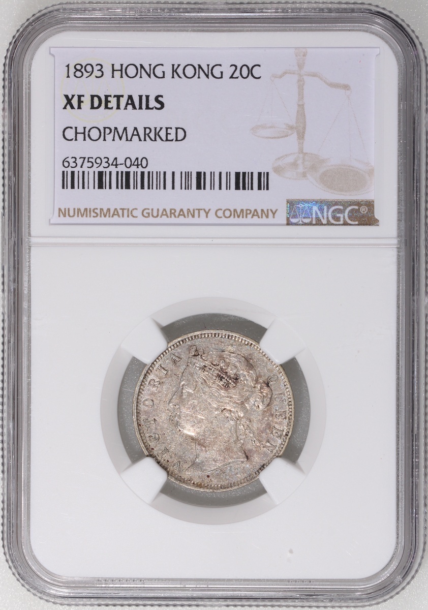 Hong Kong, silver 20 cents, 1893, NGC XF Details, chopmarked. Cert.# 6375934-040