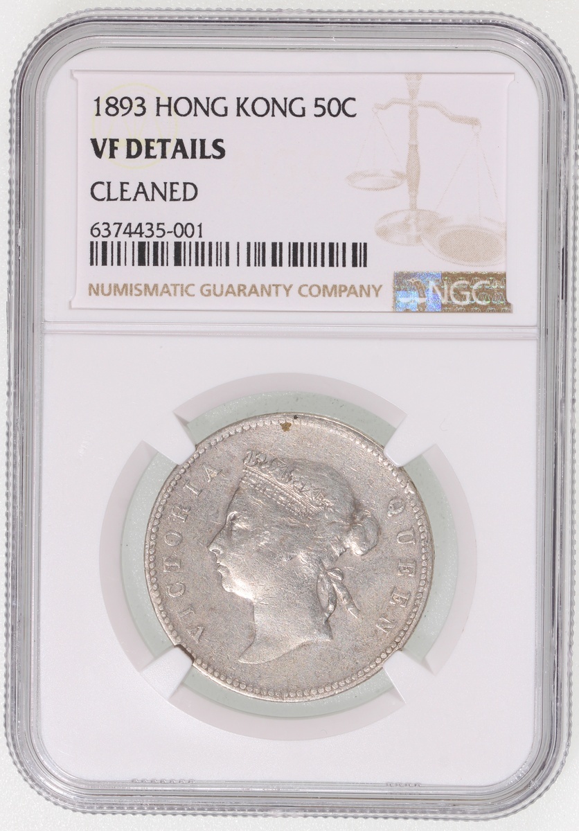Hong Kong, Victoria, 50 cents, 1893, NGC VF Details, cleaned. #6374435-001