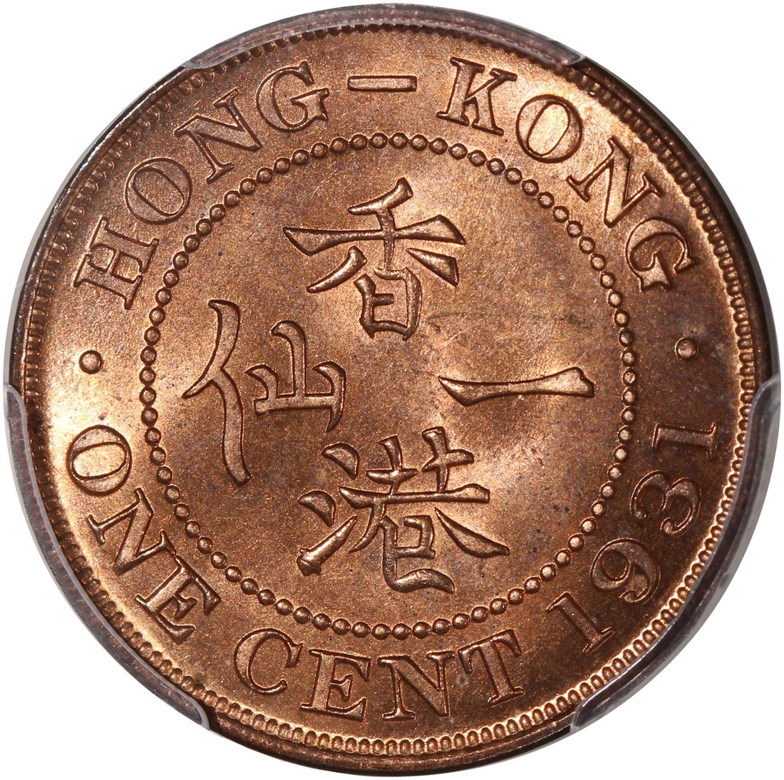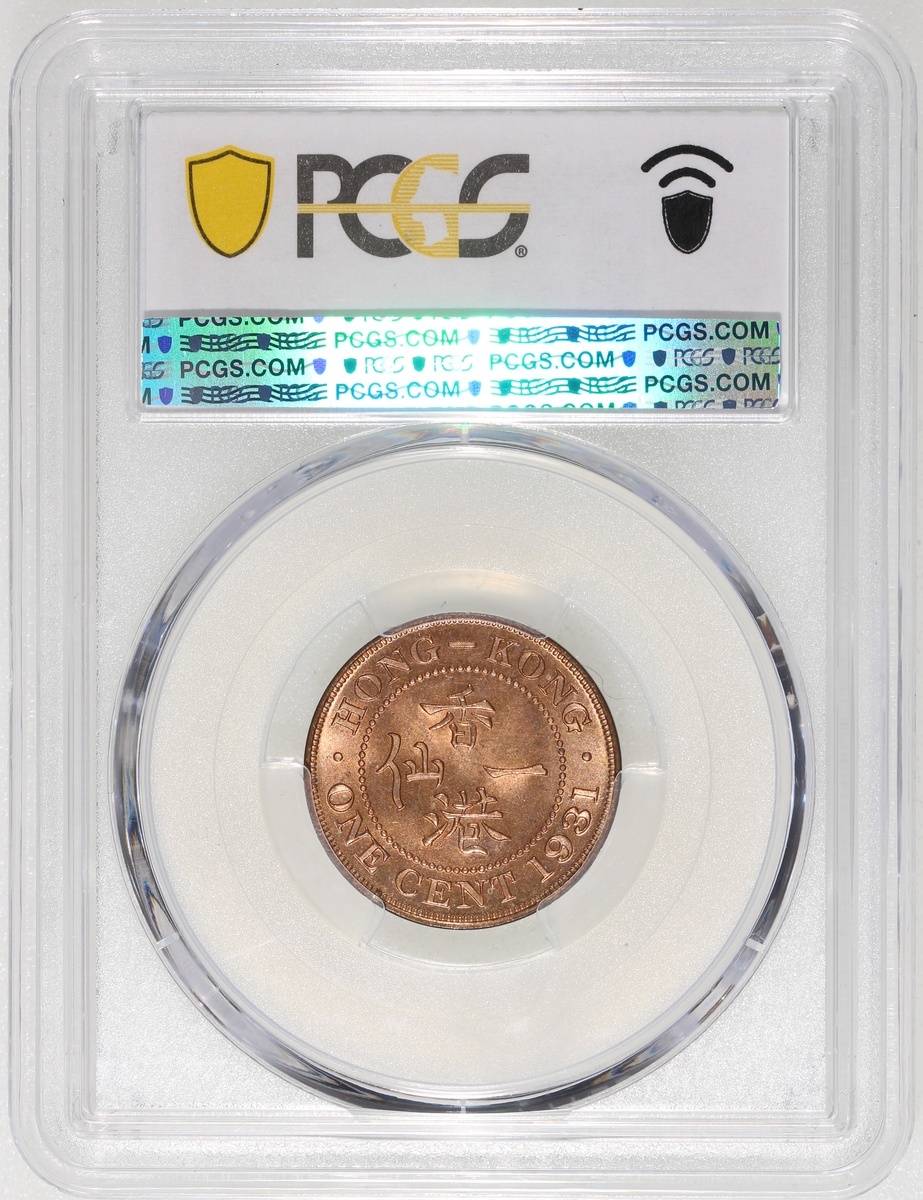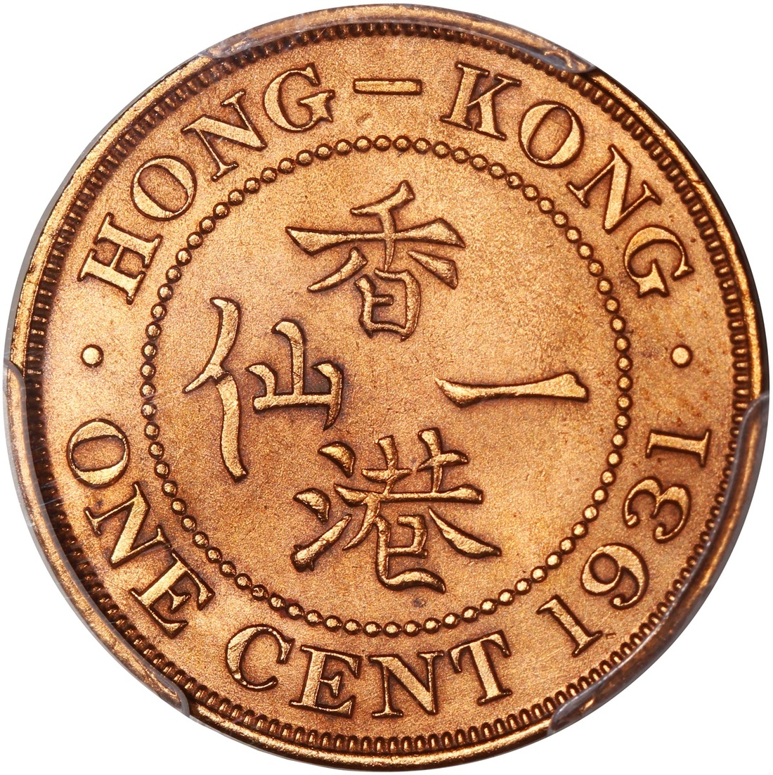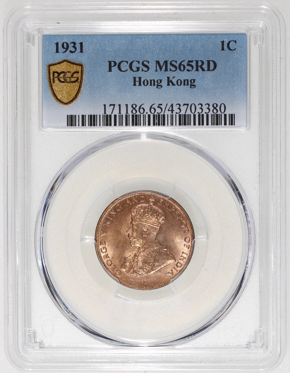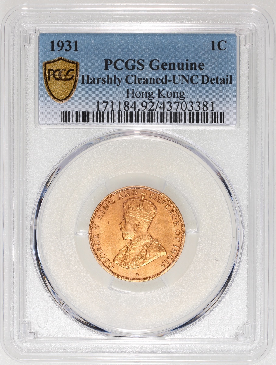 1931年香港喬治五世一仙一組兩枚,PCGS分別評MS65RD及UNC Detail(有嚴重清洗),#43703380 、43703381