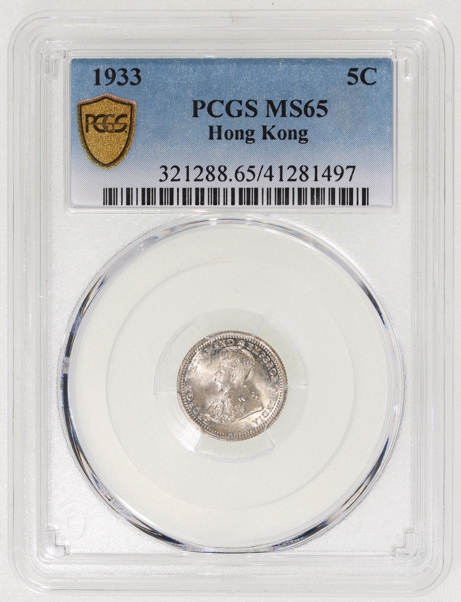 1933年香港喬治五世五仙,PCGS MS65,#41281497