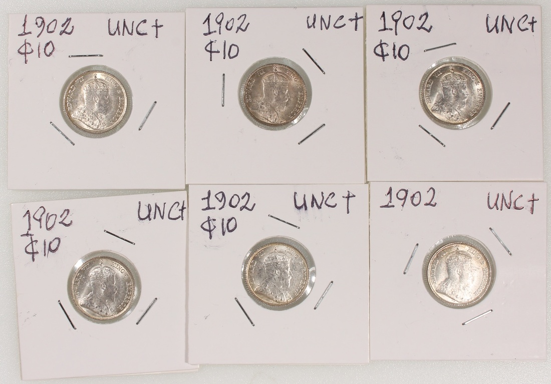 Hong Kong, a group of 6x 10 cents, 1902, Edward VII, about uncirculated to uncirculated, with lustre and toning (6).