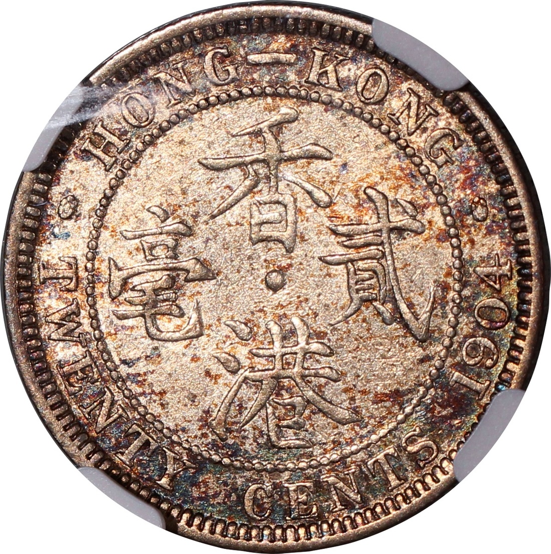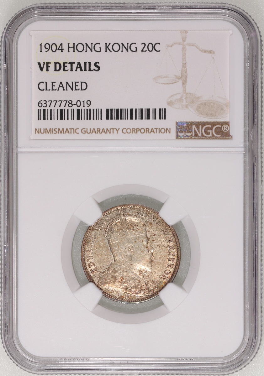Hong Kong, silver 20 cents, 1904, Edward VII on obverse, NGC VF Details (Cleaned), cert. #6377778-019