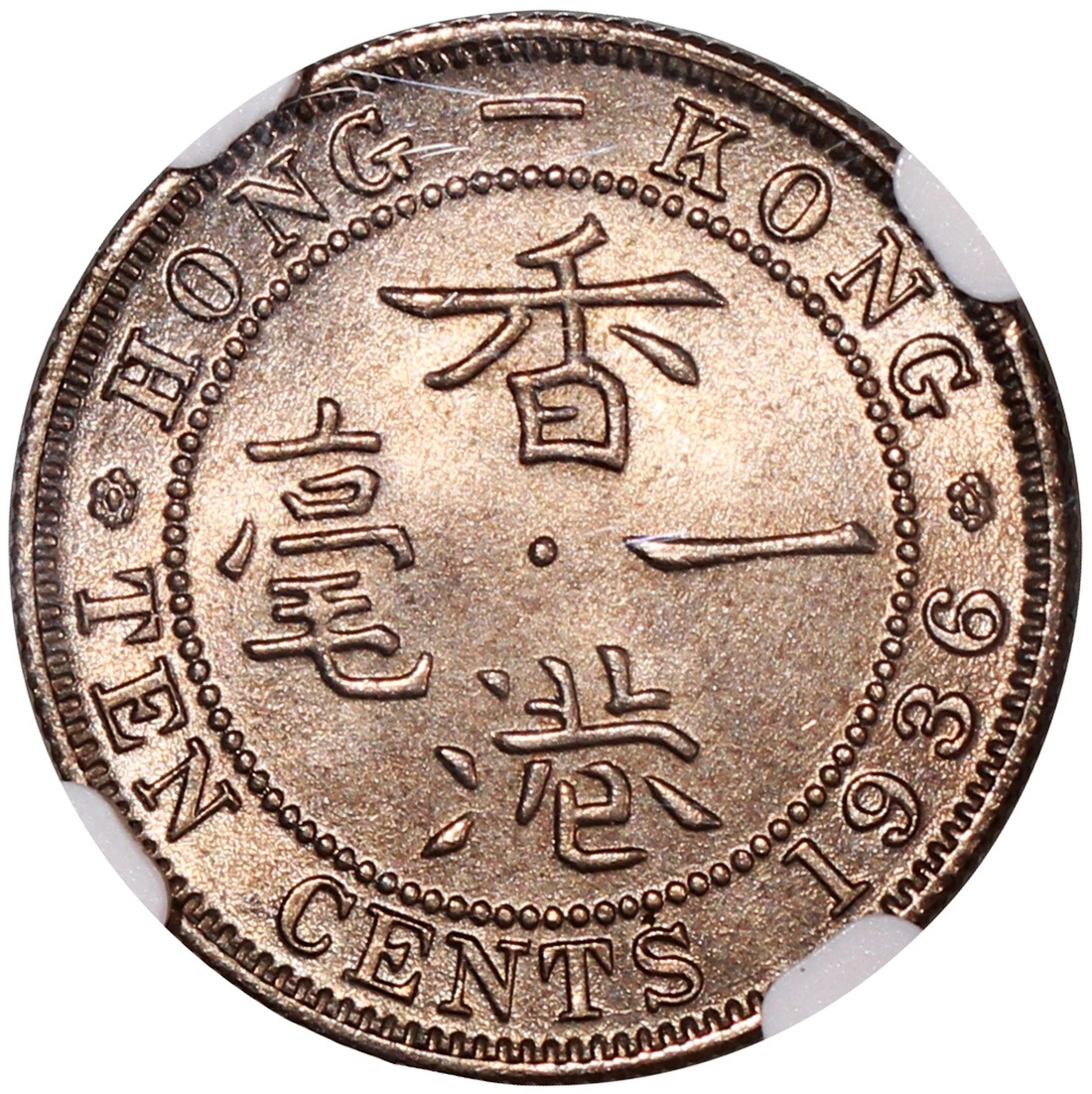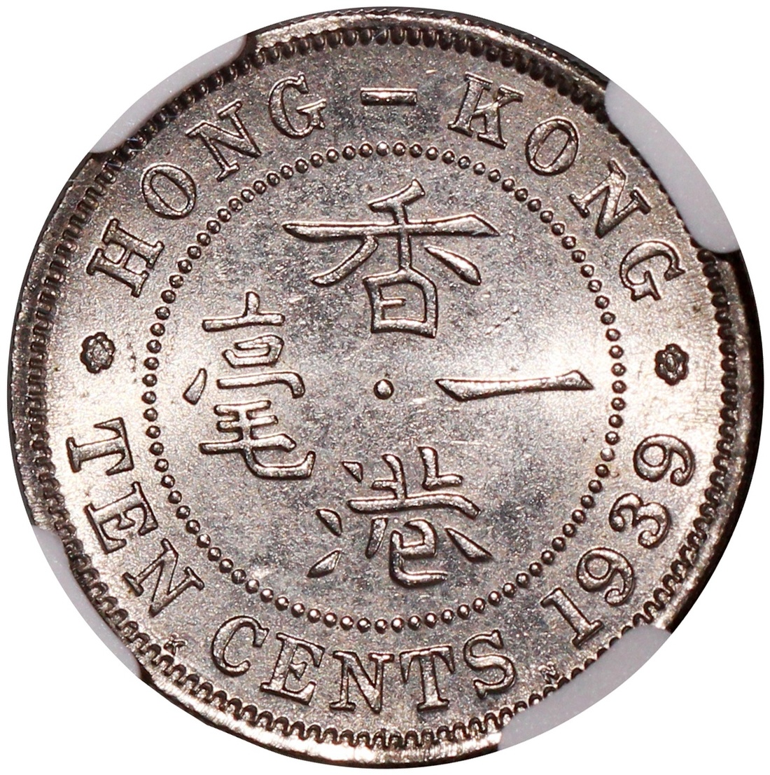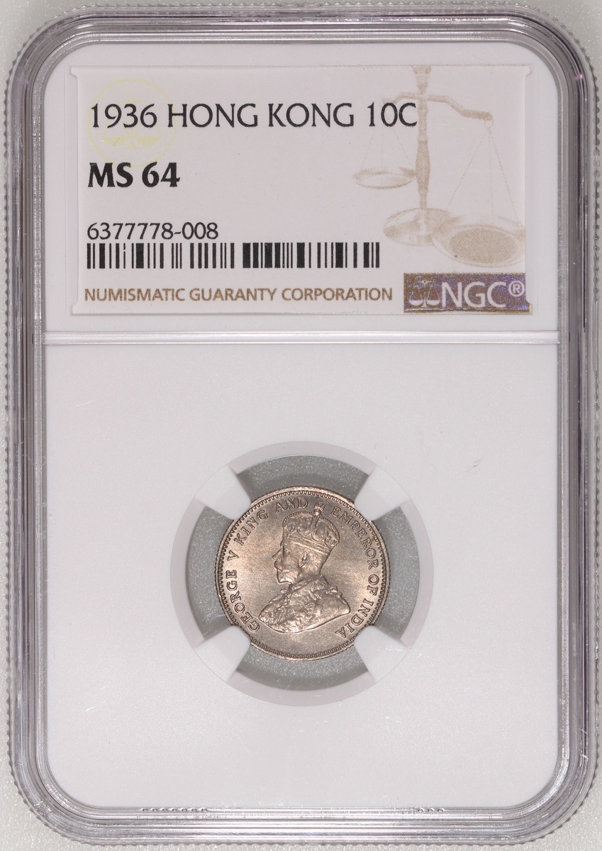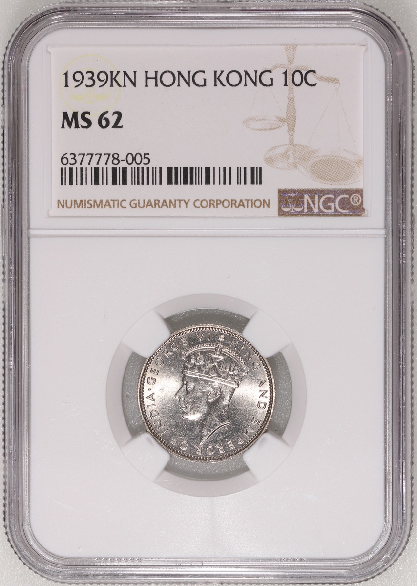1936年香港喬治五世一毫及1939KN香港喬治六世一毫,NGC分別評MS64及MS62,#6377778-008、#6377778-005