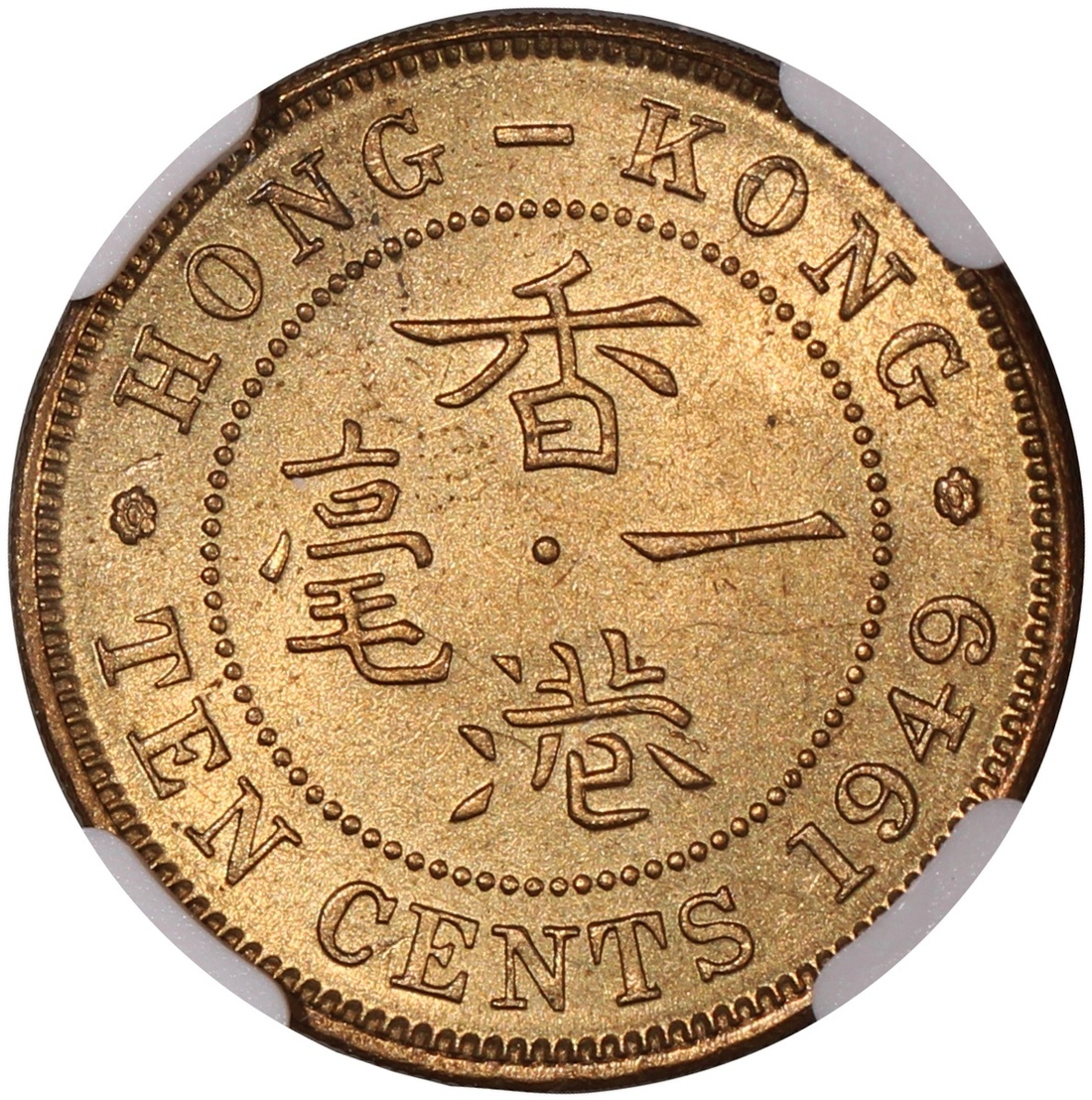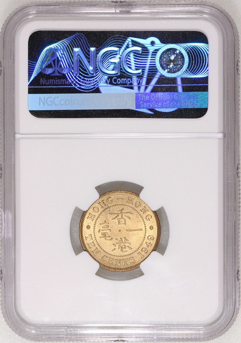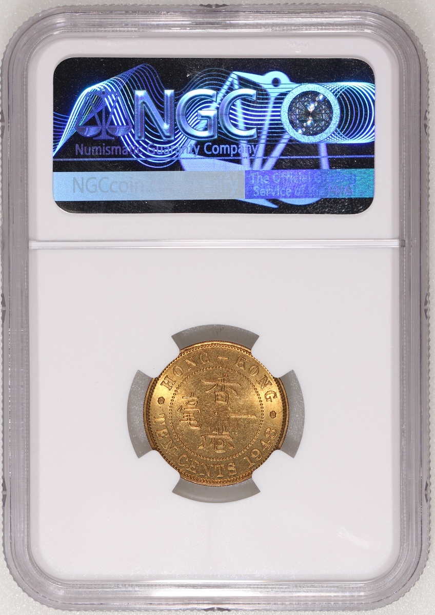 Hong Kong, a pair of 10 cents, 1948 and 1949, graded NGC MS63 and MS64 respectively, #6377778-010 and #6377778-009 (2).