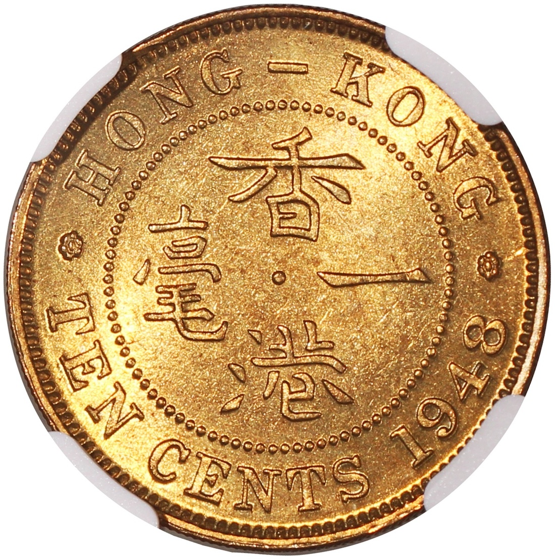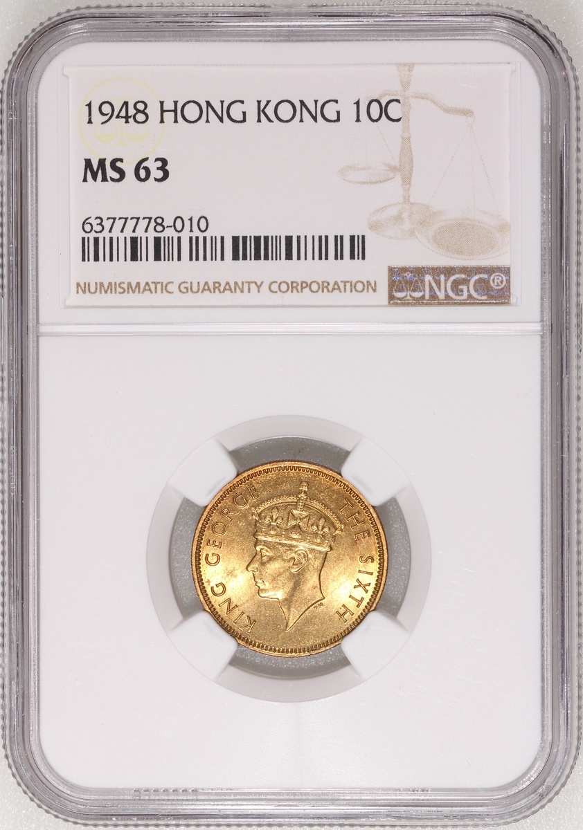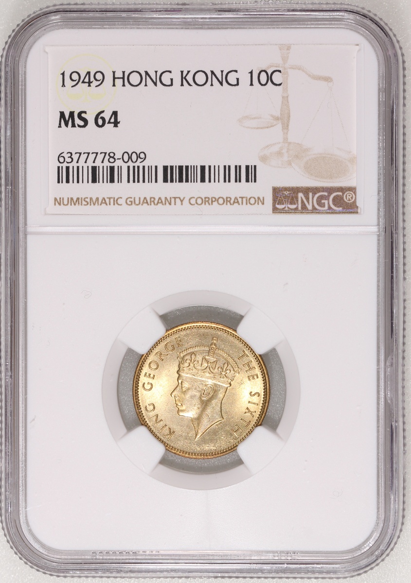 Hong Kong, a pair of 10 cents, 1948 and 1949, graded NGC MS63 and MS64 respectively, #6377778-010 and #6377778-009 (2).