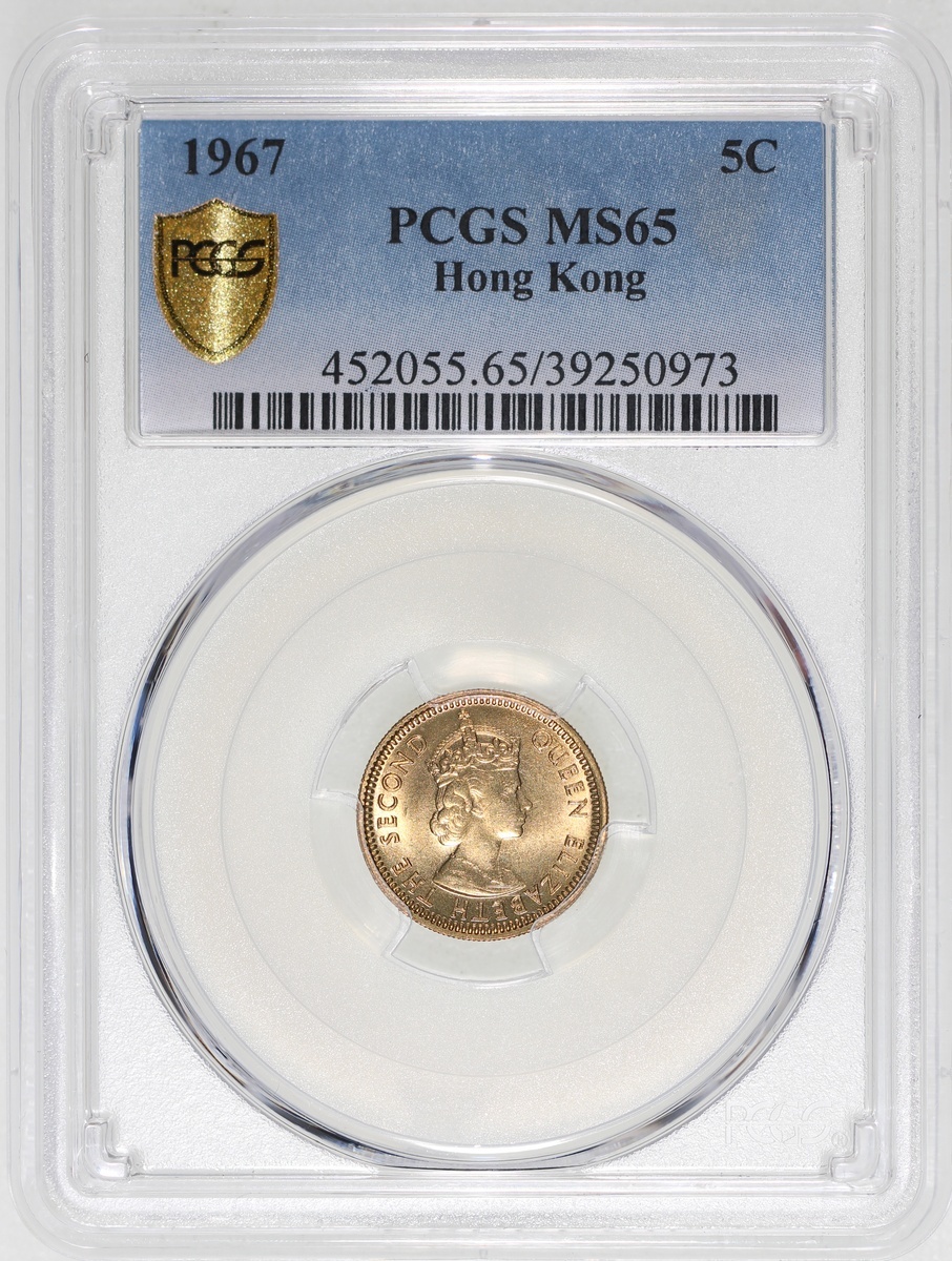 1965及1967年香港伊利沙伯二世五仙一組兩枚,PCGS分別評MS66及MS65,#39250971 、#39250973