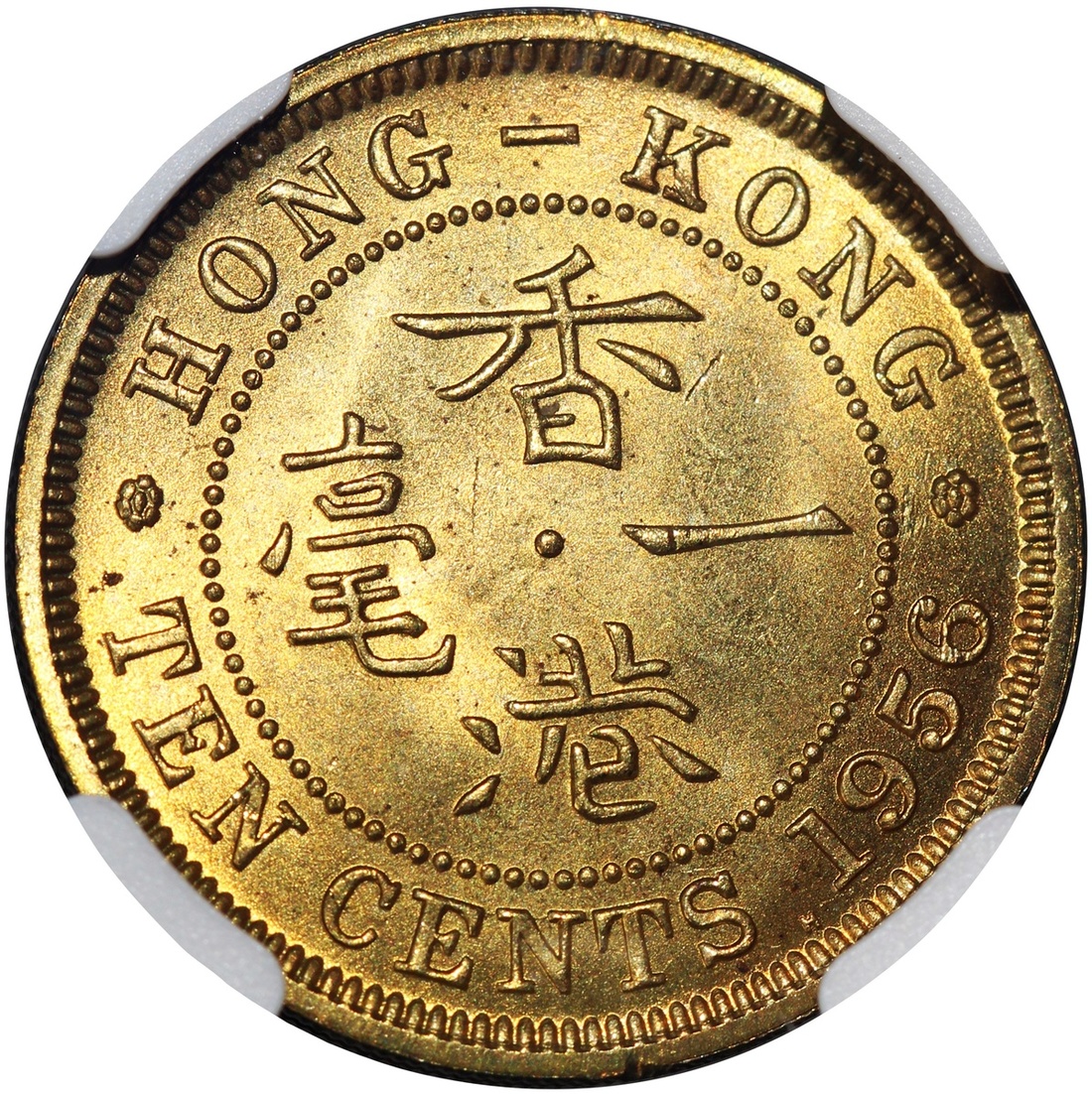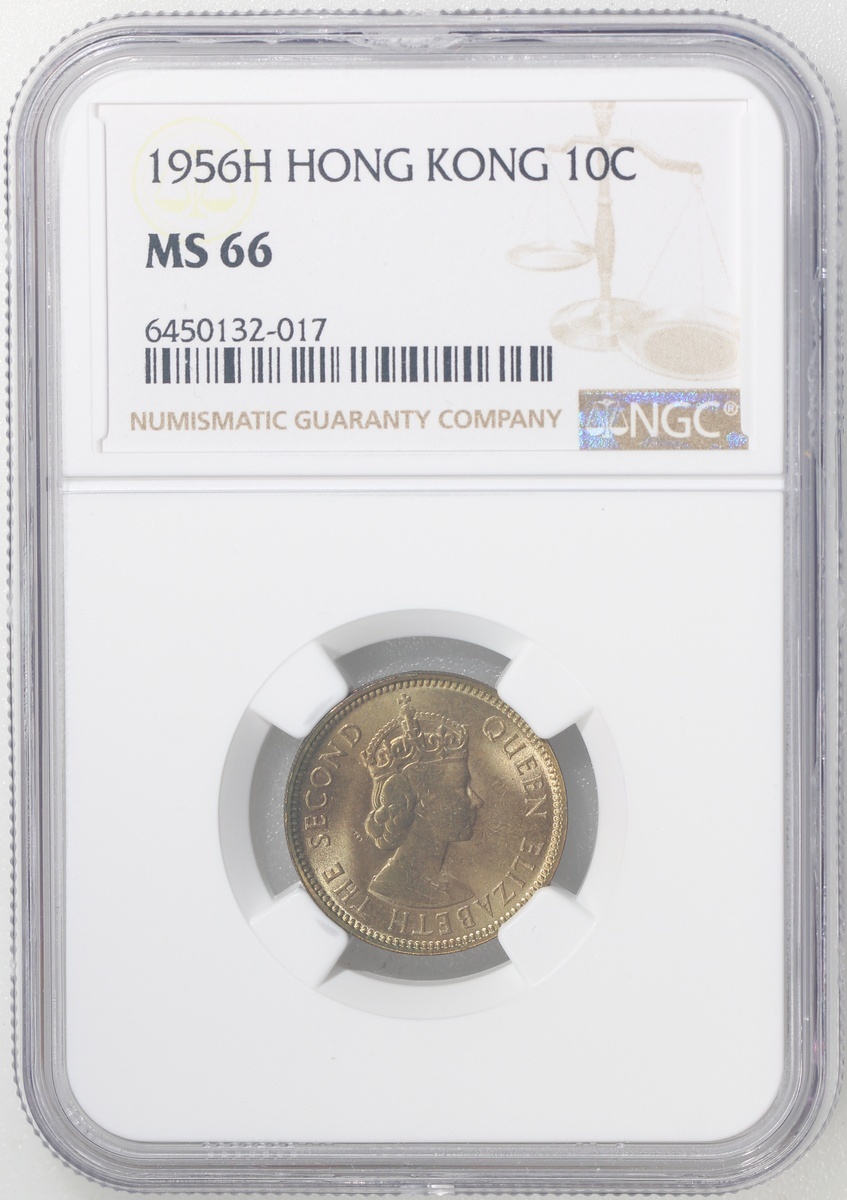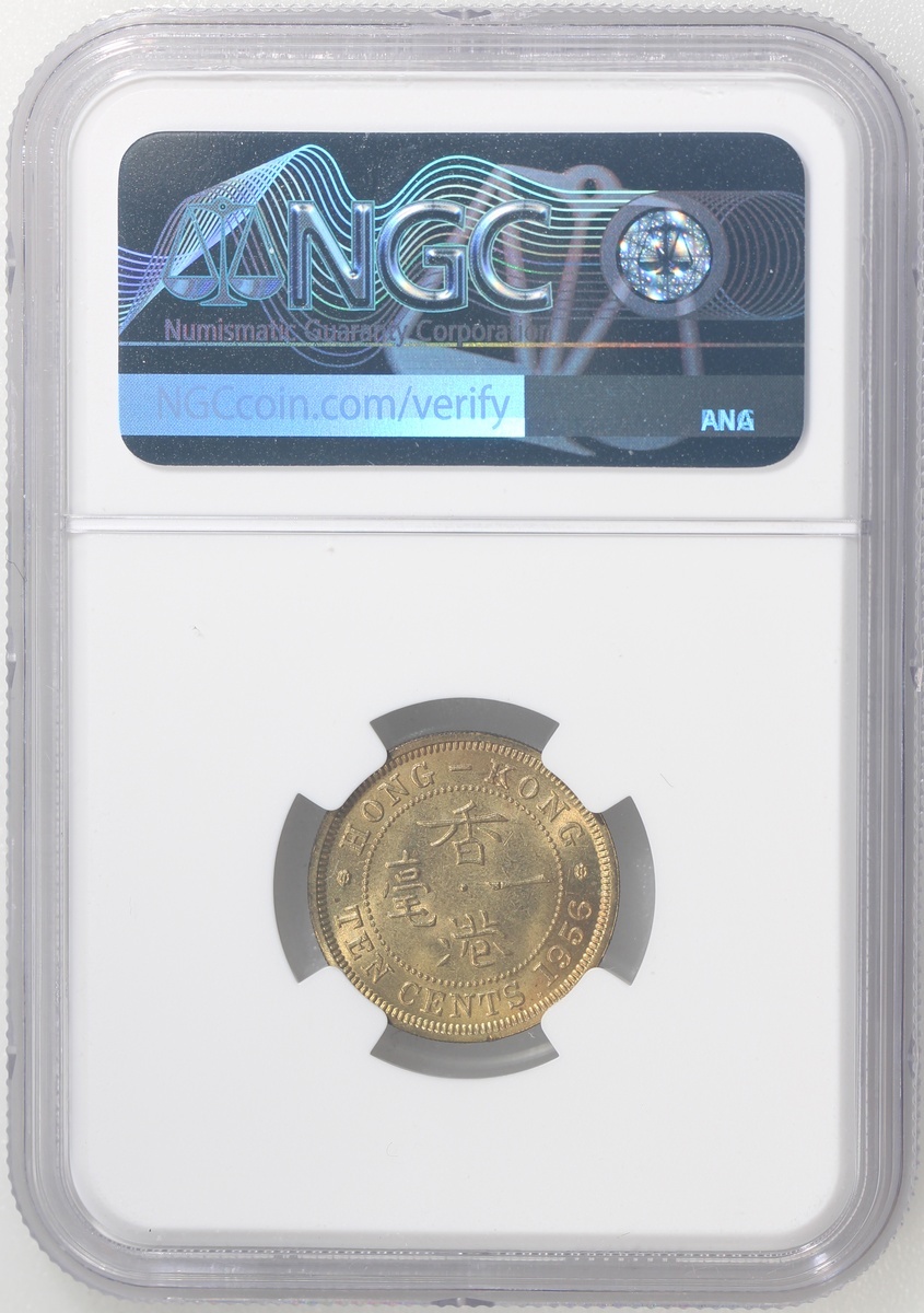 Hong Kong, nickel brass 10 cents, 1956-H, NGC MS65, Cert. #6450132-018