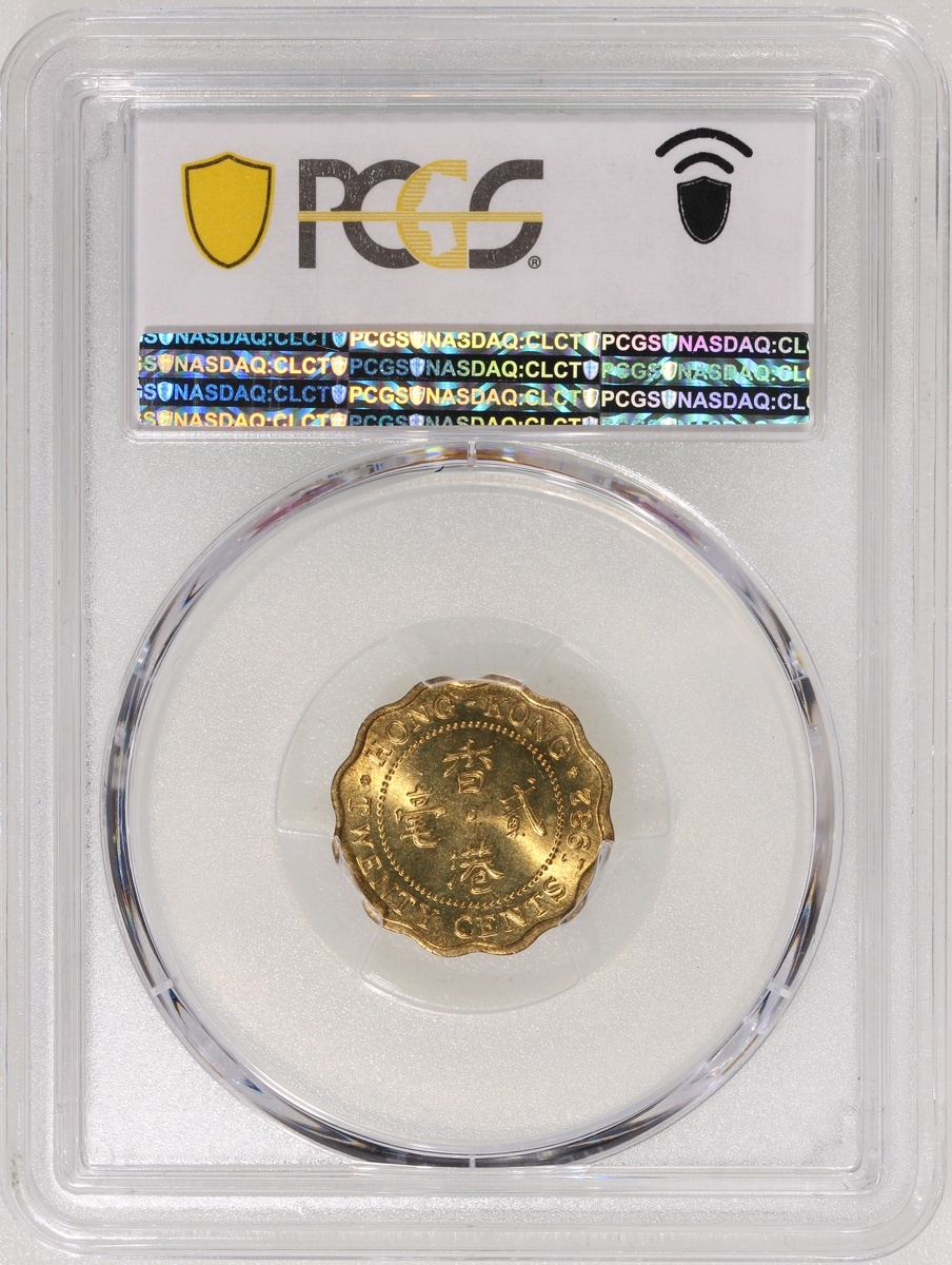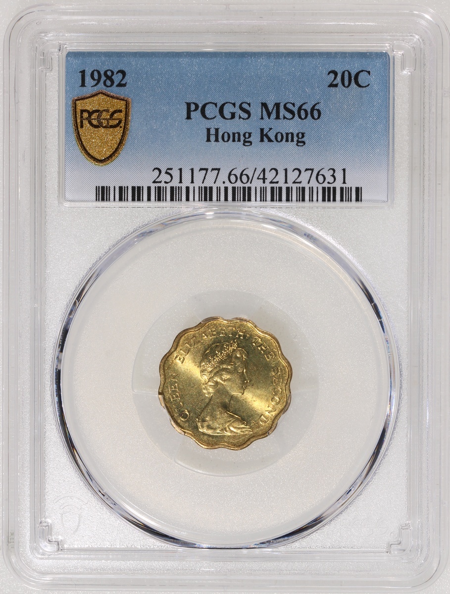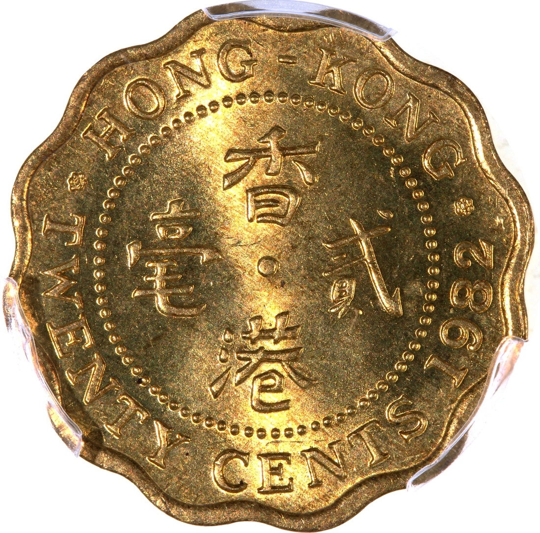 Hong Kong, nickel brass 20 cents, 1982, crowned bust of Elizabeth II facing right, PCGS MS66, cert. #42127631