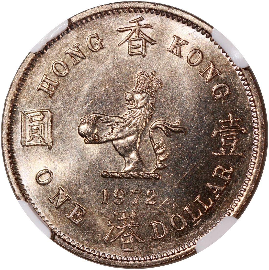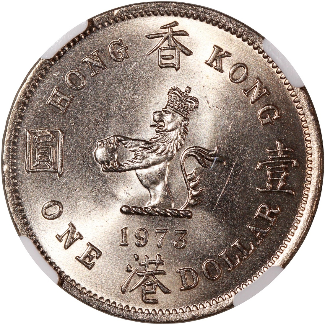 Hong Kong, a pair of copper nickel $1, 1972 and 1973, graded NGC MS65 and MS64 respectively, cert. #3300271-013, 3300270-015 (2)