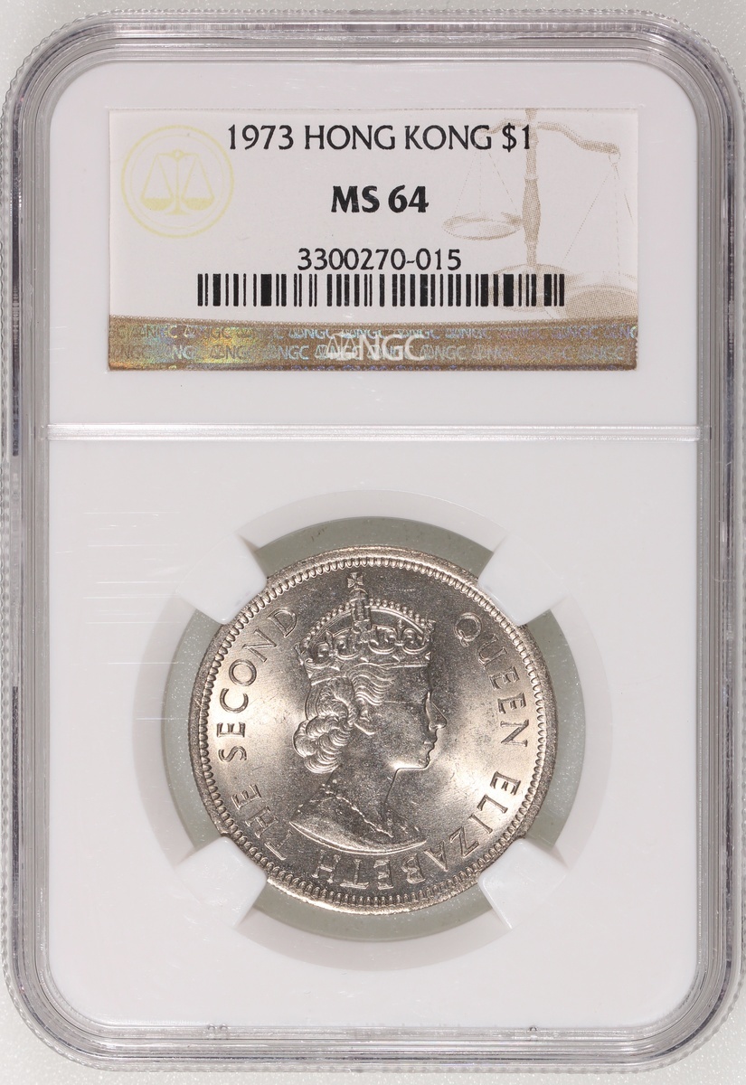 1972及1973年香港伊利沙伯二世壹圓一組兩枚,NGC分別評MS65及MS64,#3300271-013 、#3300270-015