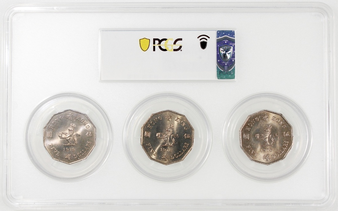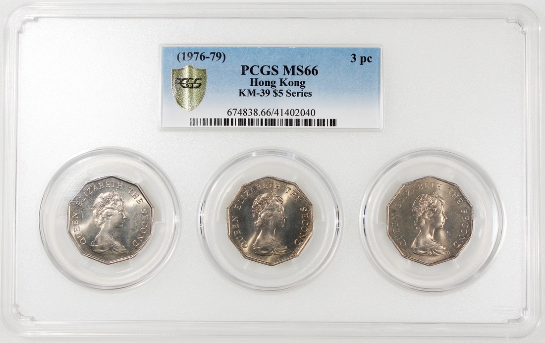 1976-1979年香港伊利沙伯二世伍圓一組三枚,PCGS皆評MS66,#41402040
