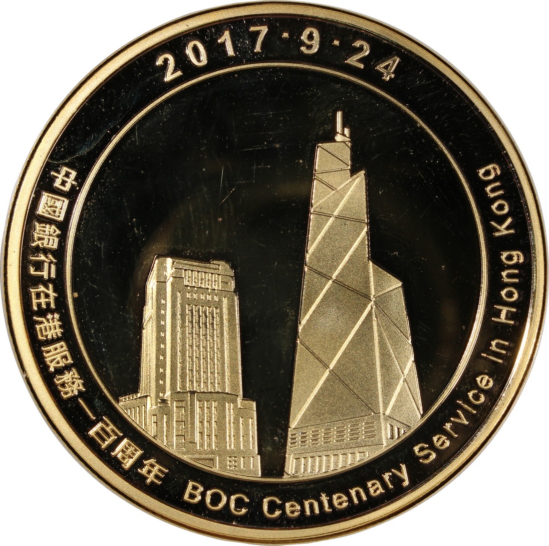 Bank of China (Hong Kong), gold-plating medal, commemorative issue for the centenary of the Bank, 2017, uncirculated, with original box.