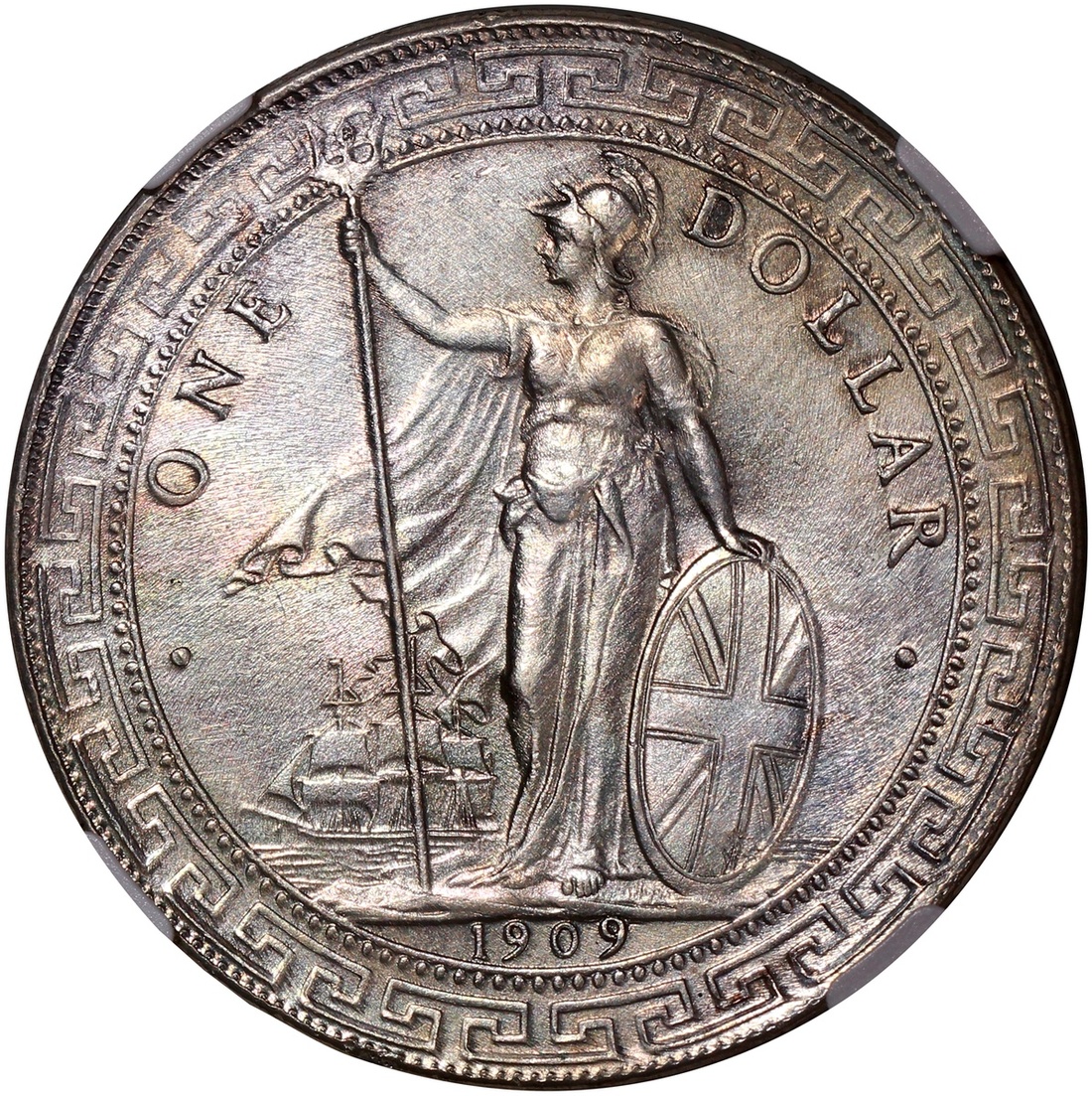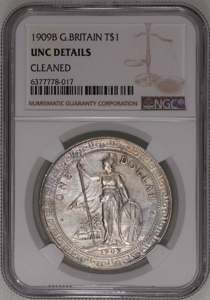 1909B英國貿易銀元,NGC UNC Details (有清洗),正面帶淡淡玄彩包漿,#6377778-017