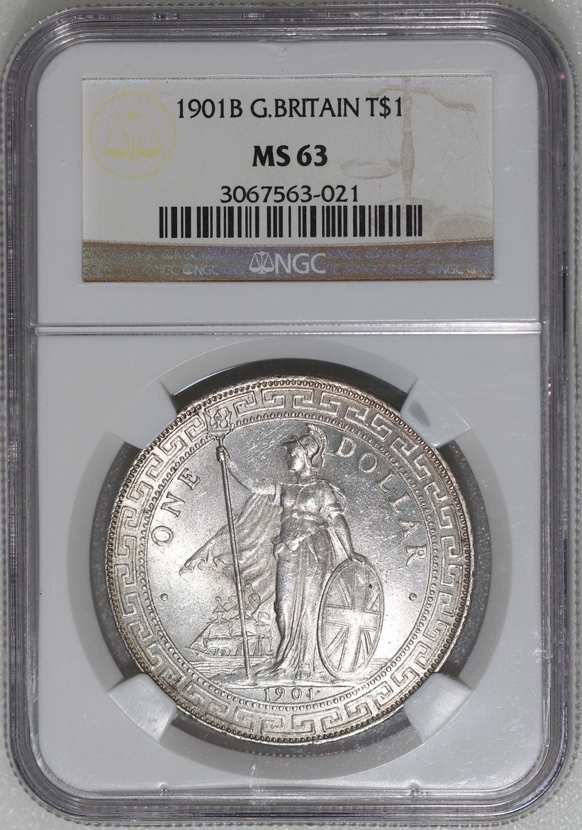 1901B英國貿易銀元,NGC MS63,輕柔包漿,#3067563-021