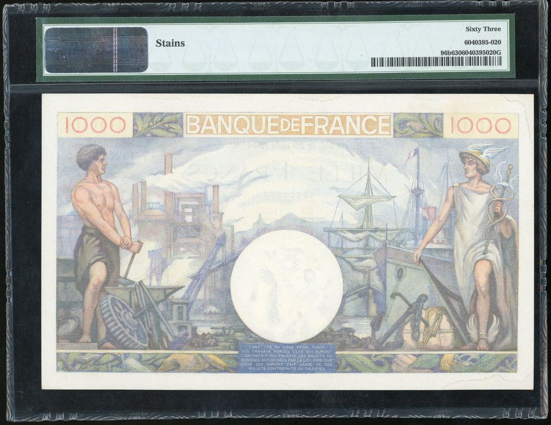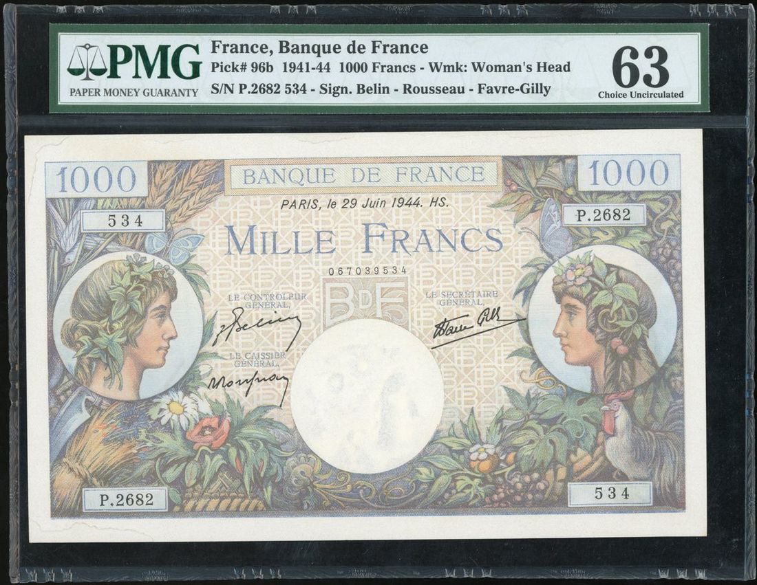 1944年法國1000法郎, 編號 P.2682 534. PMG 63 (有漬)