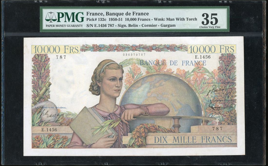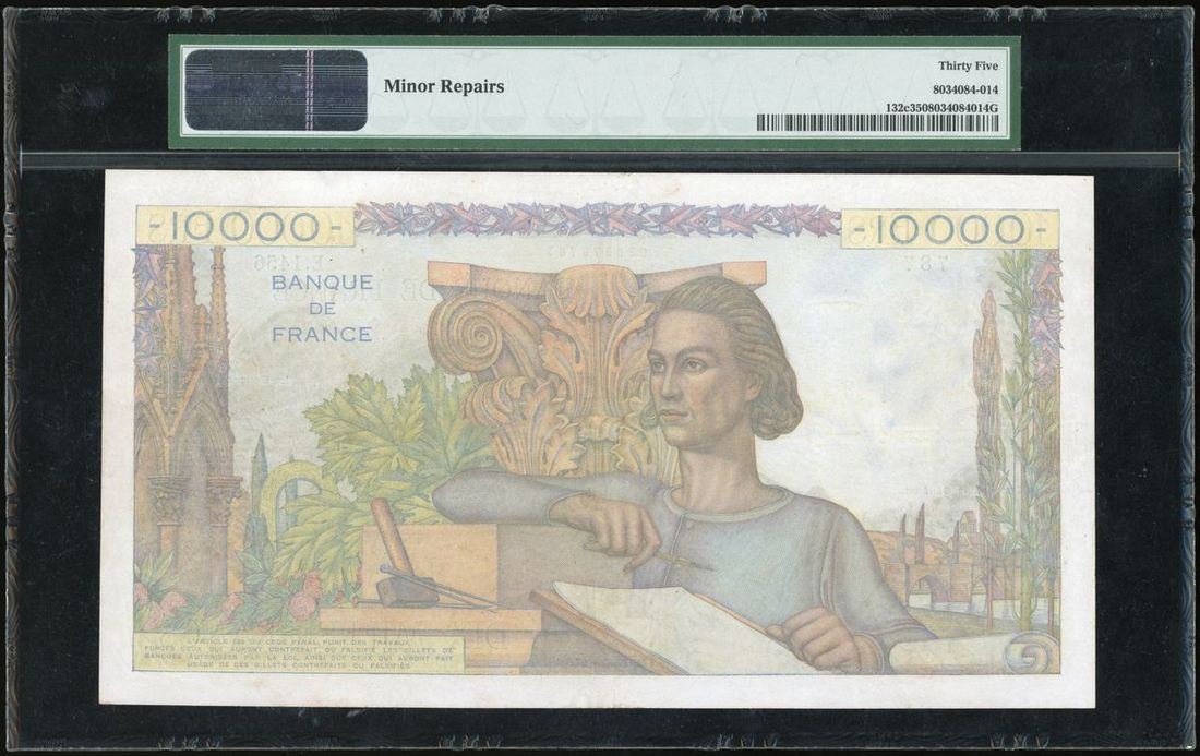 1950-51年法國10000法郎, 編號 E.1456 787. PMG 35 (有輕微修補)