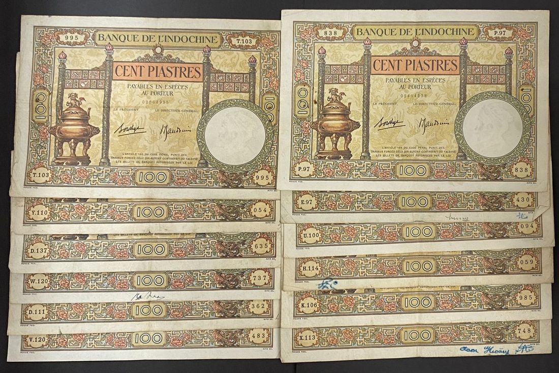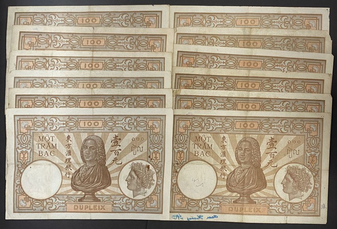 1936年法屬安南100元一組十二枚, Borduge/Baudouin簽名, F-VF 品相, 有細孔