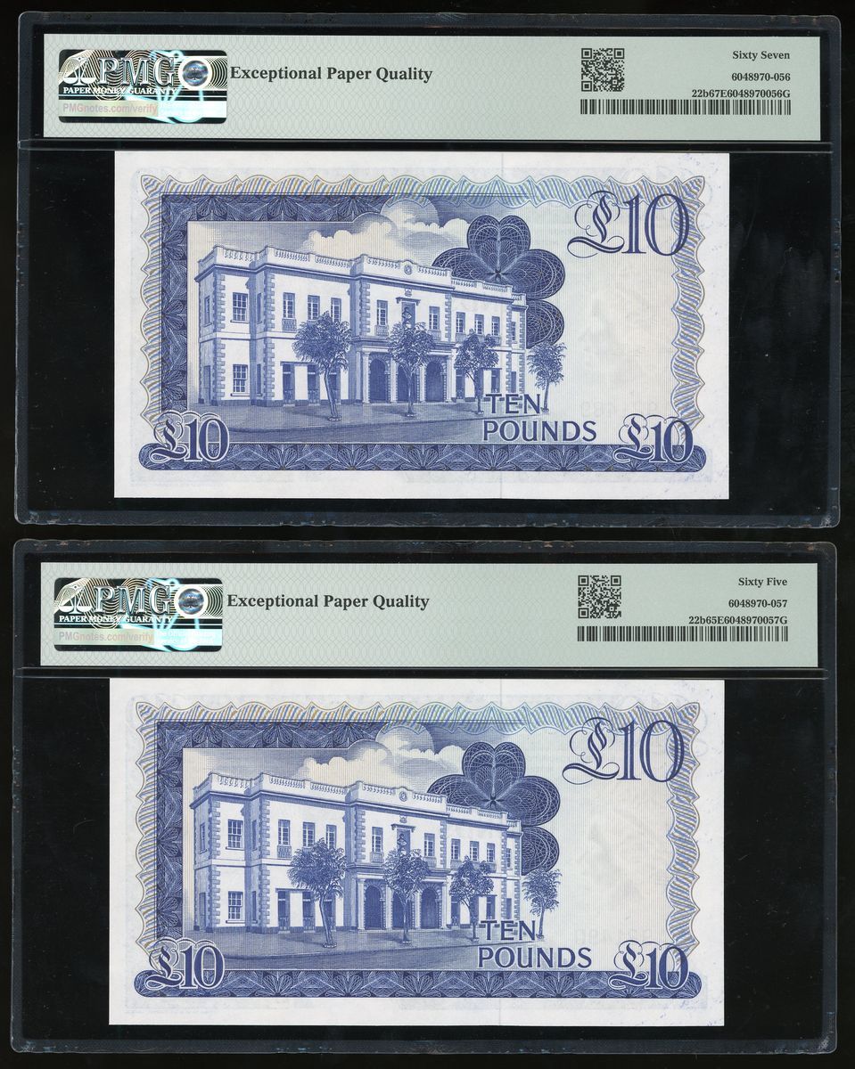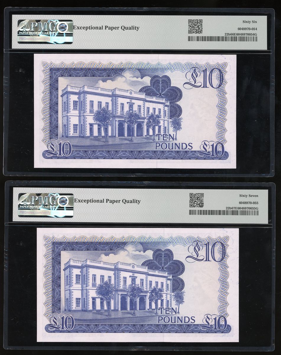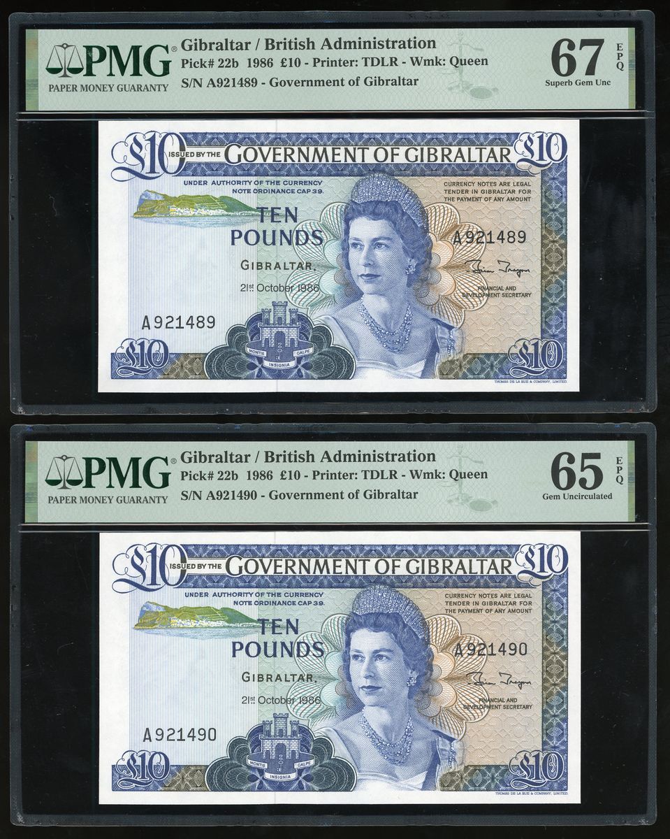 Government of Gibraltar, a consecutive run of 4x £10, 1986, serial numbers A921487-490 (Pick 22b), graded PMG 66EPQ Gem Uncirculated, 67EPQ Superb Gem Uncirculated, 67EPQ Superb Gem Uncirculated and 65EPQ Gem Uncirculated (4)