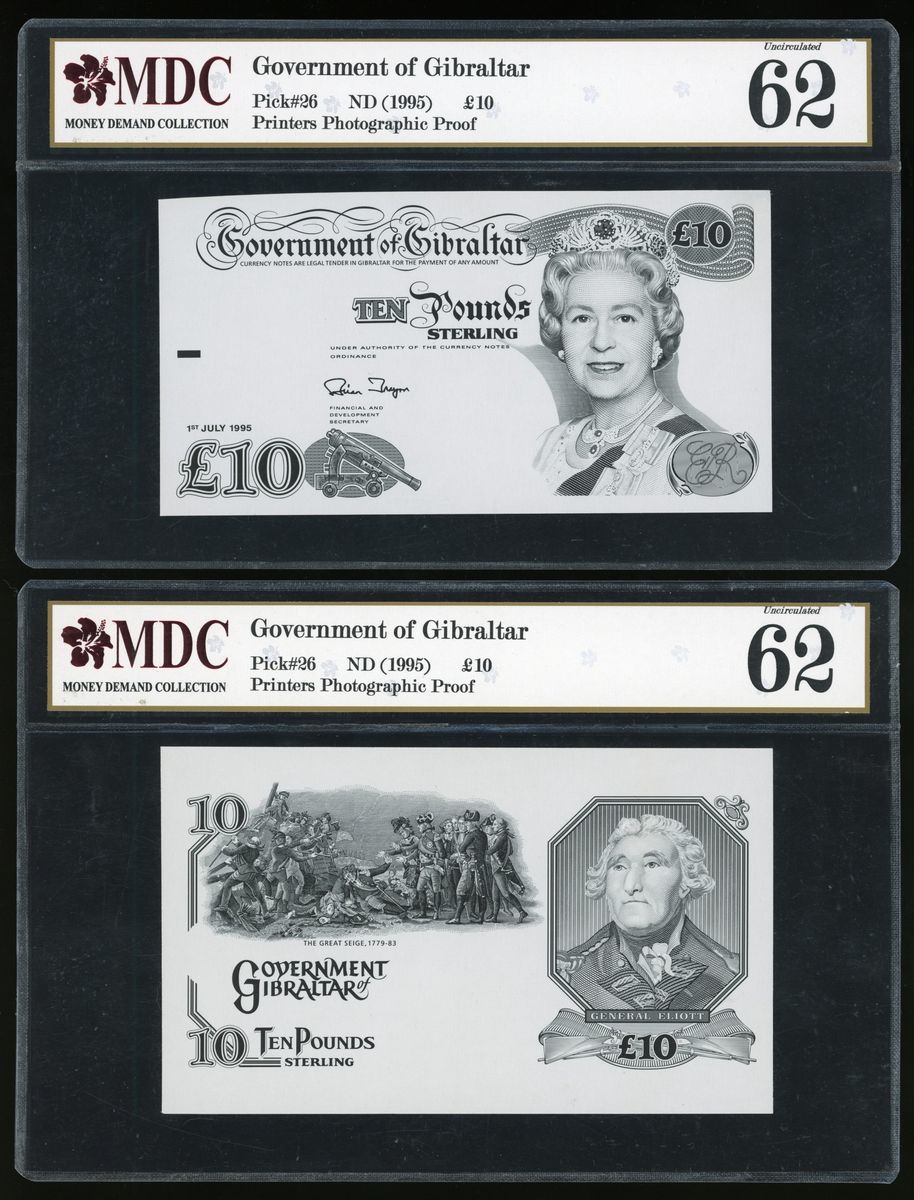 Government of Gibraltar, a pair of £10, printers photographic proof, ND(1995), (Pick 26), both graded MDC 62 Uncirculated, sold as seen no return (2)