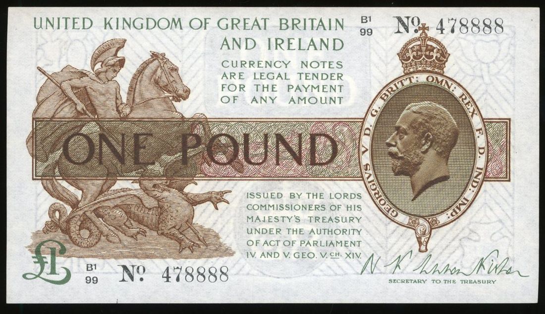 Great Britain, Treasury Note, £1, ND (1927), serial number B1/99 478888, Warren-Fisher signature,