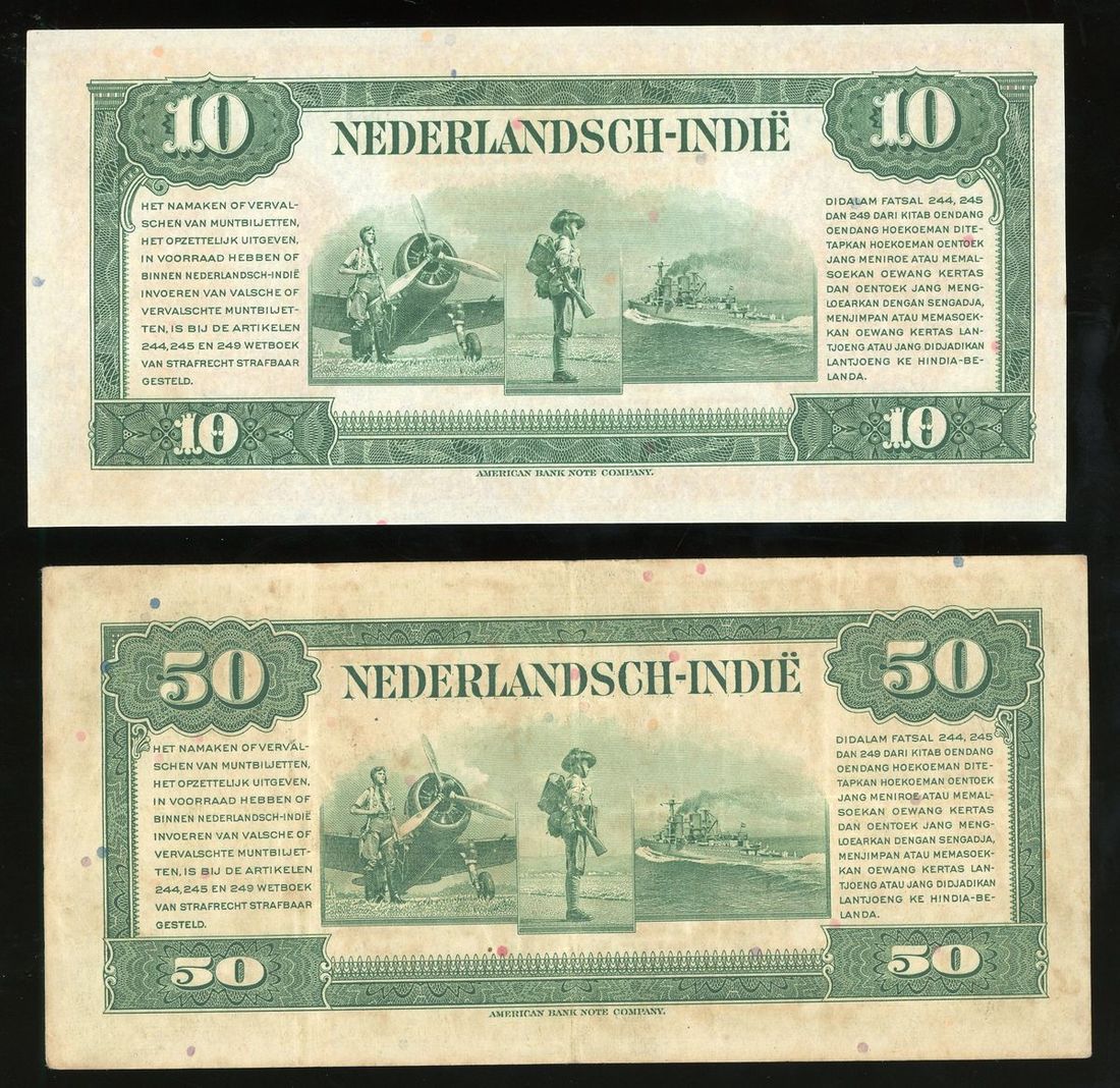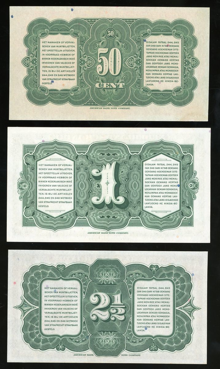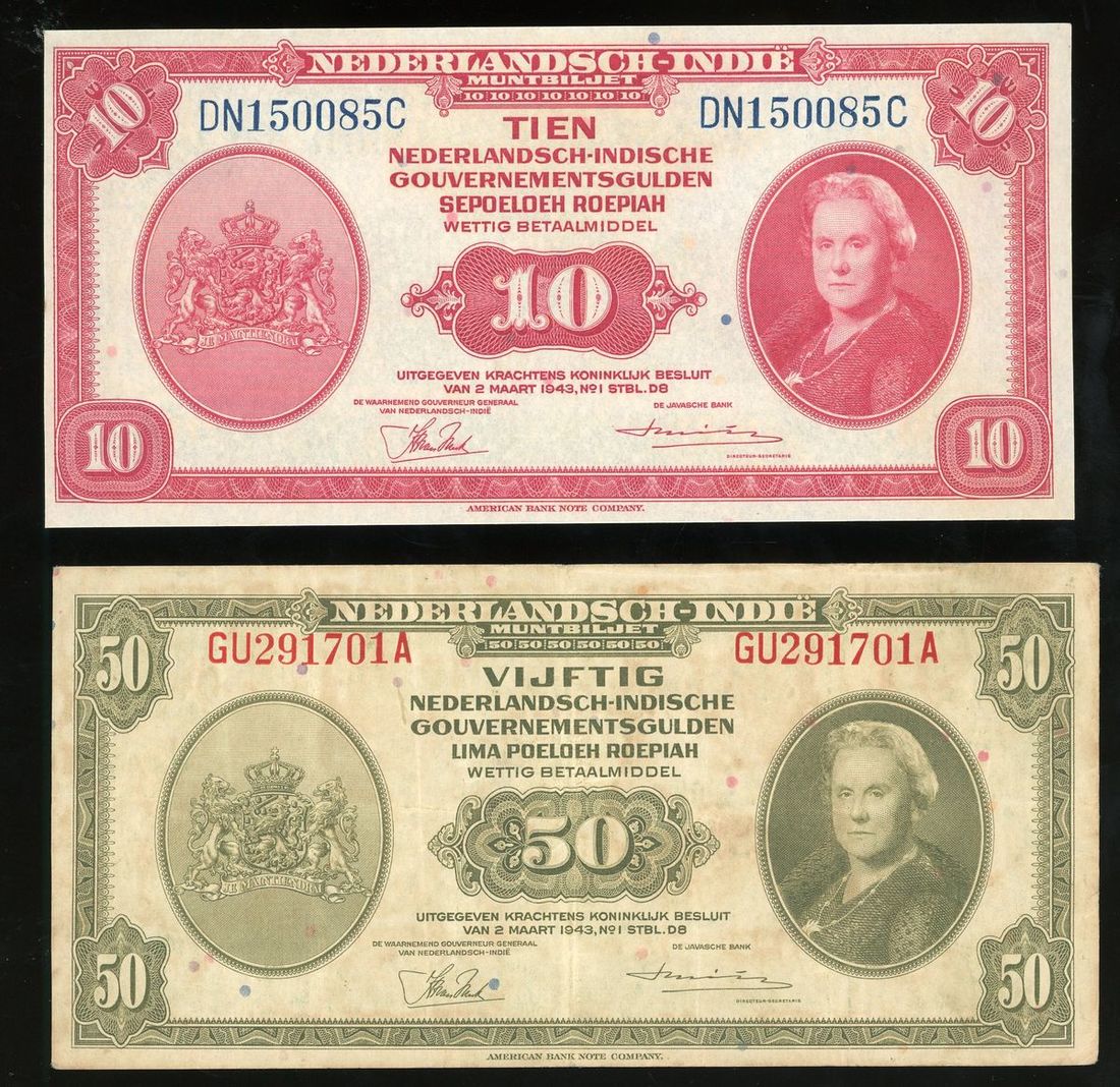 Netherlands Indies, a group of 5 Muntbiljet Gouvernementsgulden issues, including: 50 cents, 1 gulden, 2½ gulden, 10 gulden and 50 gulden, serial numbers FZ481904A, AN458932G, BA008303A, DN150085C, GU291701A,