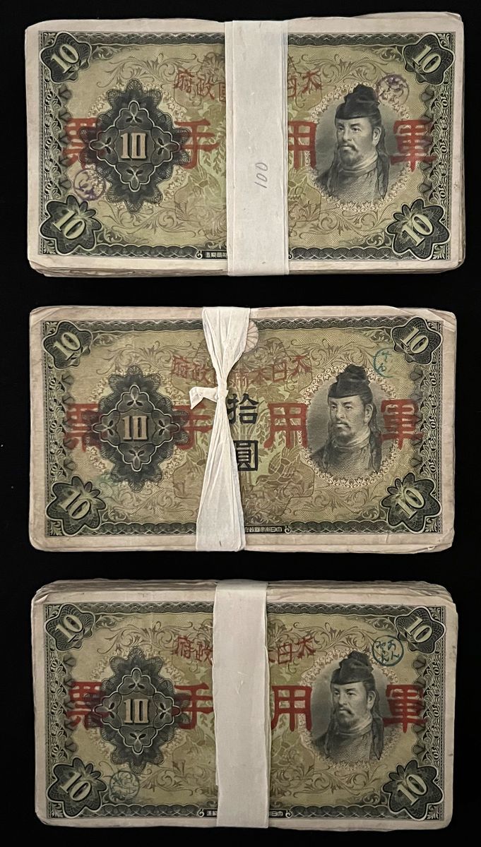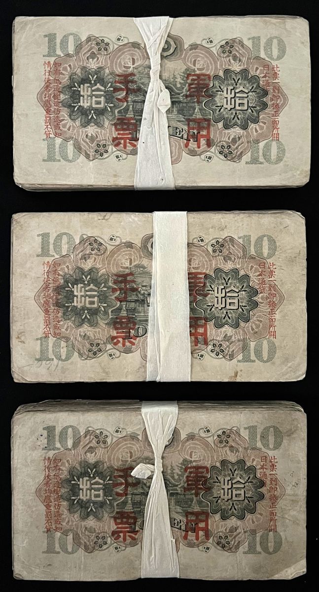 1938年日本一組300枚10圓,中央紅色加蓋「軍用手票」, F-VF 品相, 建議預覽, 原況出售,概不退換
