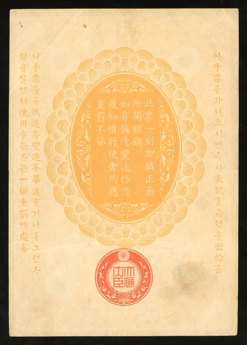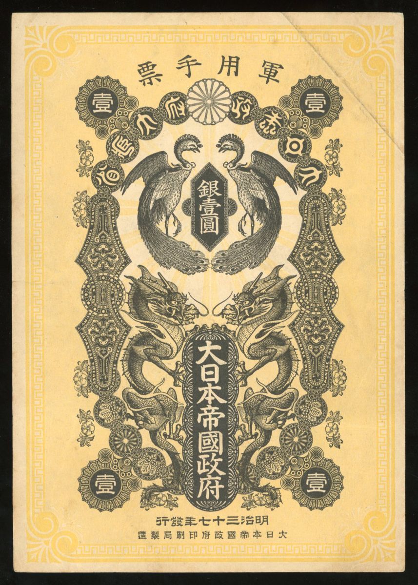 明治37年日本軍票1圓, EF品相, 右上角有摺痕