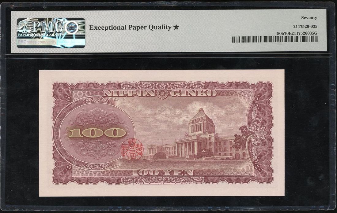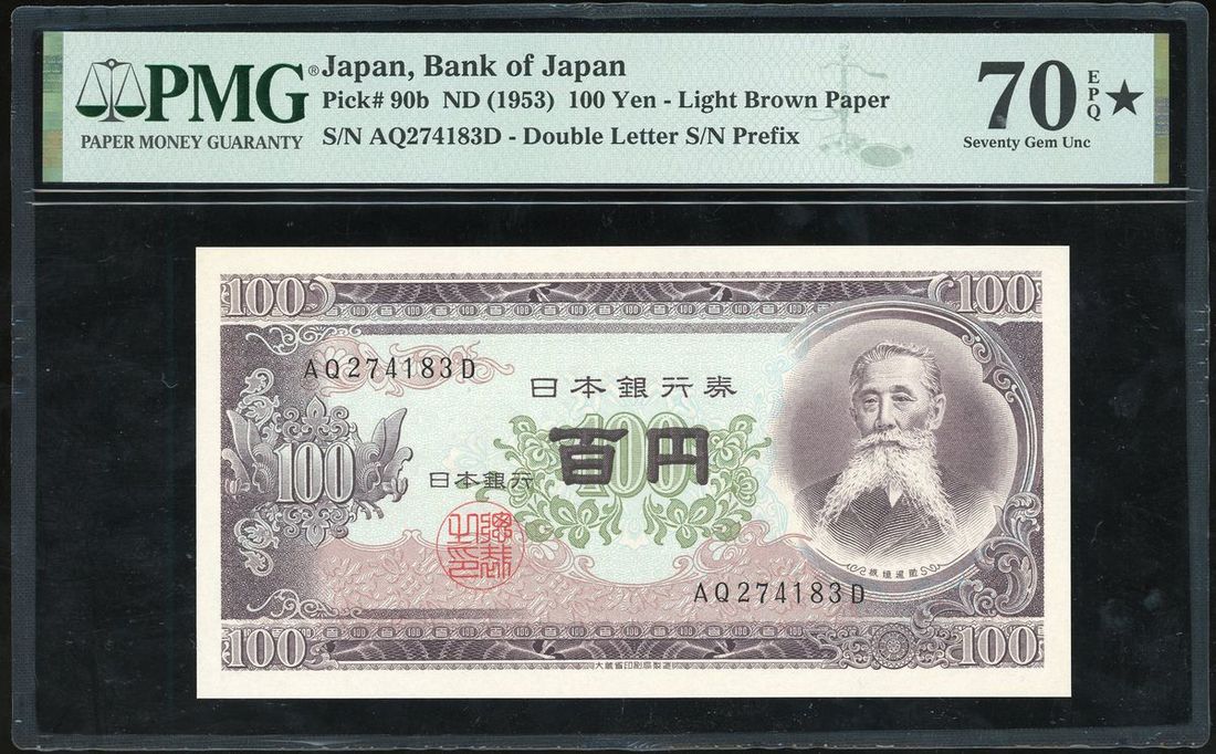 1953年日本100圓, 編號 AQ274183D, PMG 70EPQ*