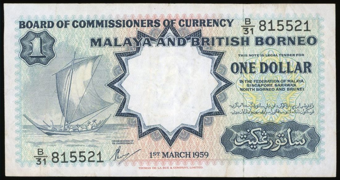 Board of Commissioners of Currency, Malaya and British Borneo, $1, 1959, serial number B/31 815521, (Pick 8), very fine.