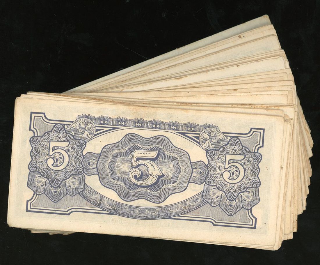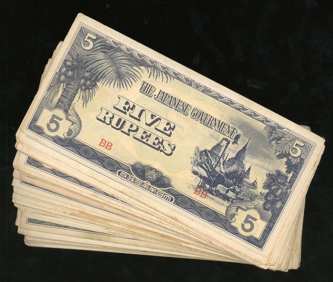 Myanmar, Japanese Military WWII a group of approximatly 75x 5 rupees, no date (1942-1944), block BB, (Pick 15), very fine or above, with mild foxing (75).