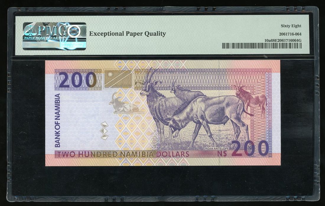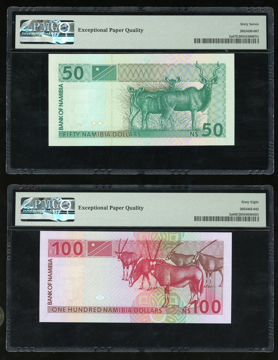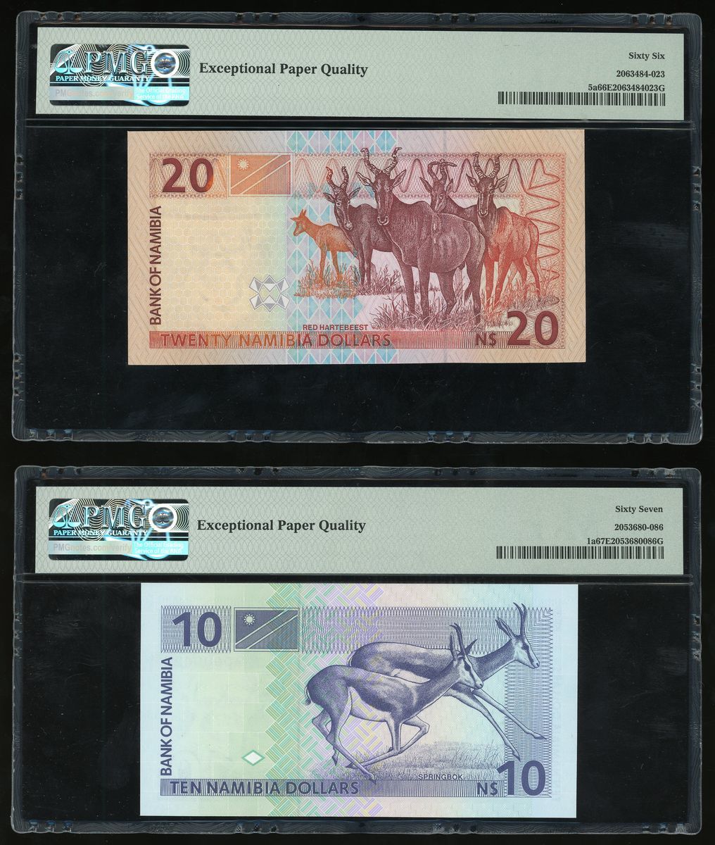 1993-96年納米比亞一組5枚同號0000428, 包括10, 20, 50, 100及200元. PMG 66-68EPQ