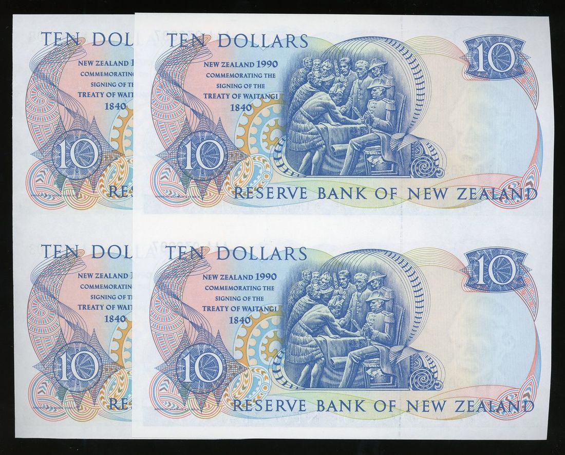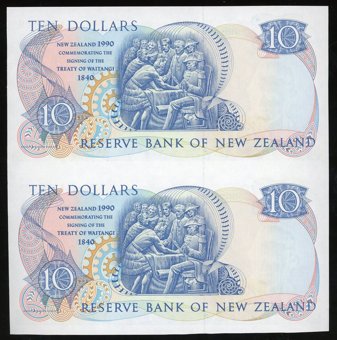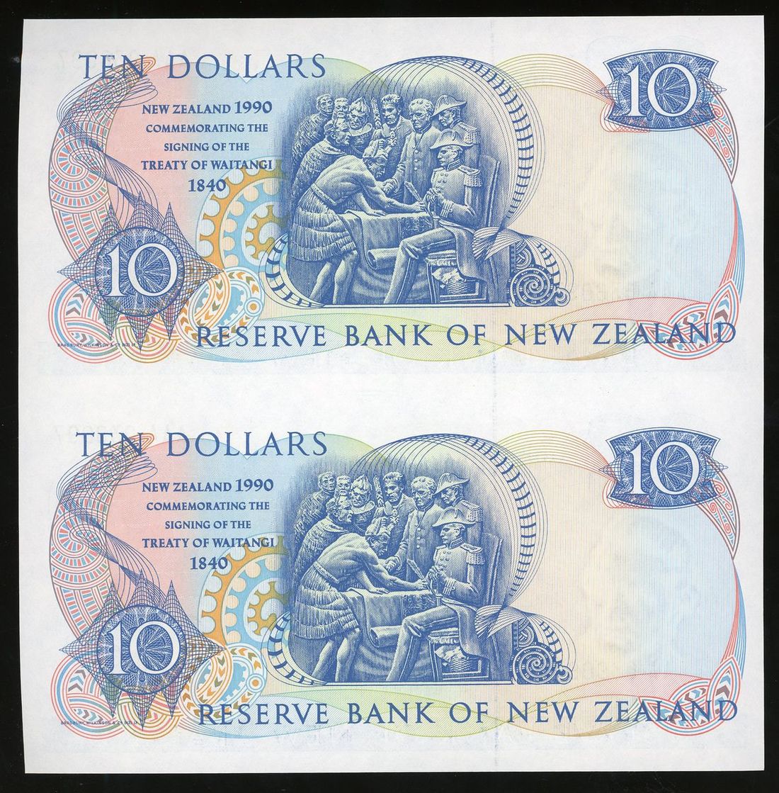 Reserve Bank of New Zealand, 2x uncut sheet of two $10, ND (1990), serial numbers AAA 001308/004308, 036097/039097, (Pick 176), uncirculated (2)