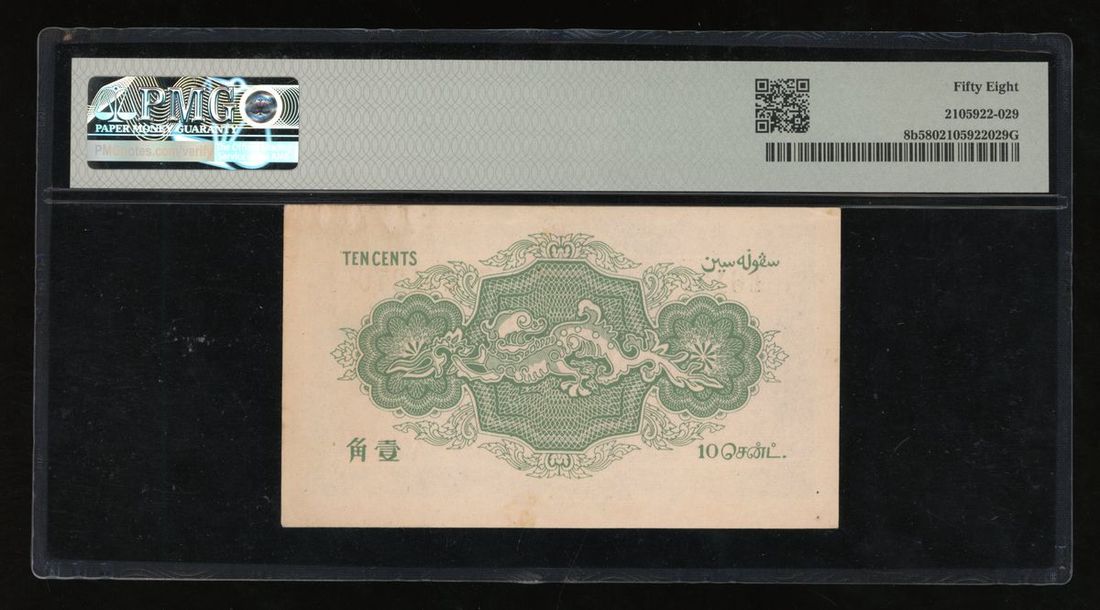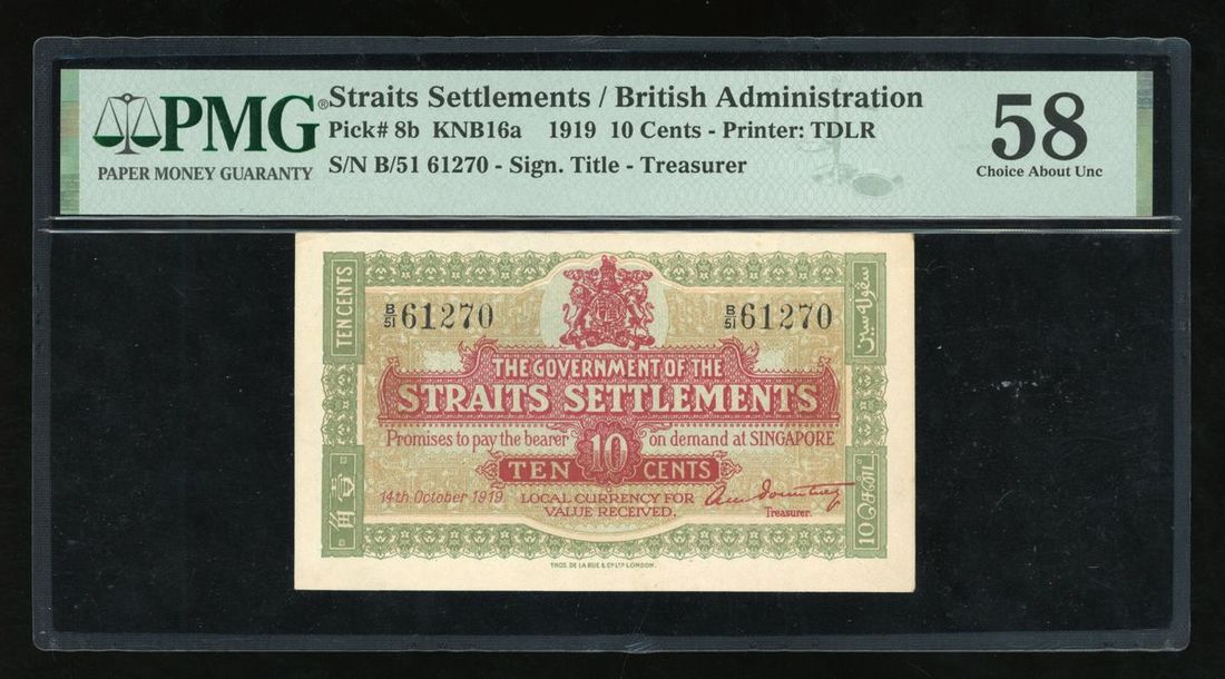 1919年海峽殖民地10分, 編號 B/51 61270. PMG 58