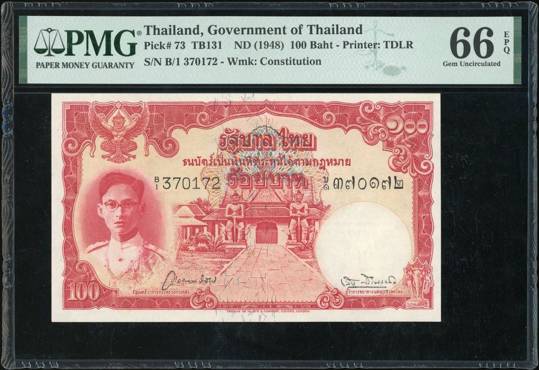 1948年泰國100銖, 編號 B/1 370172, PMG 66EPQ