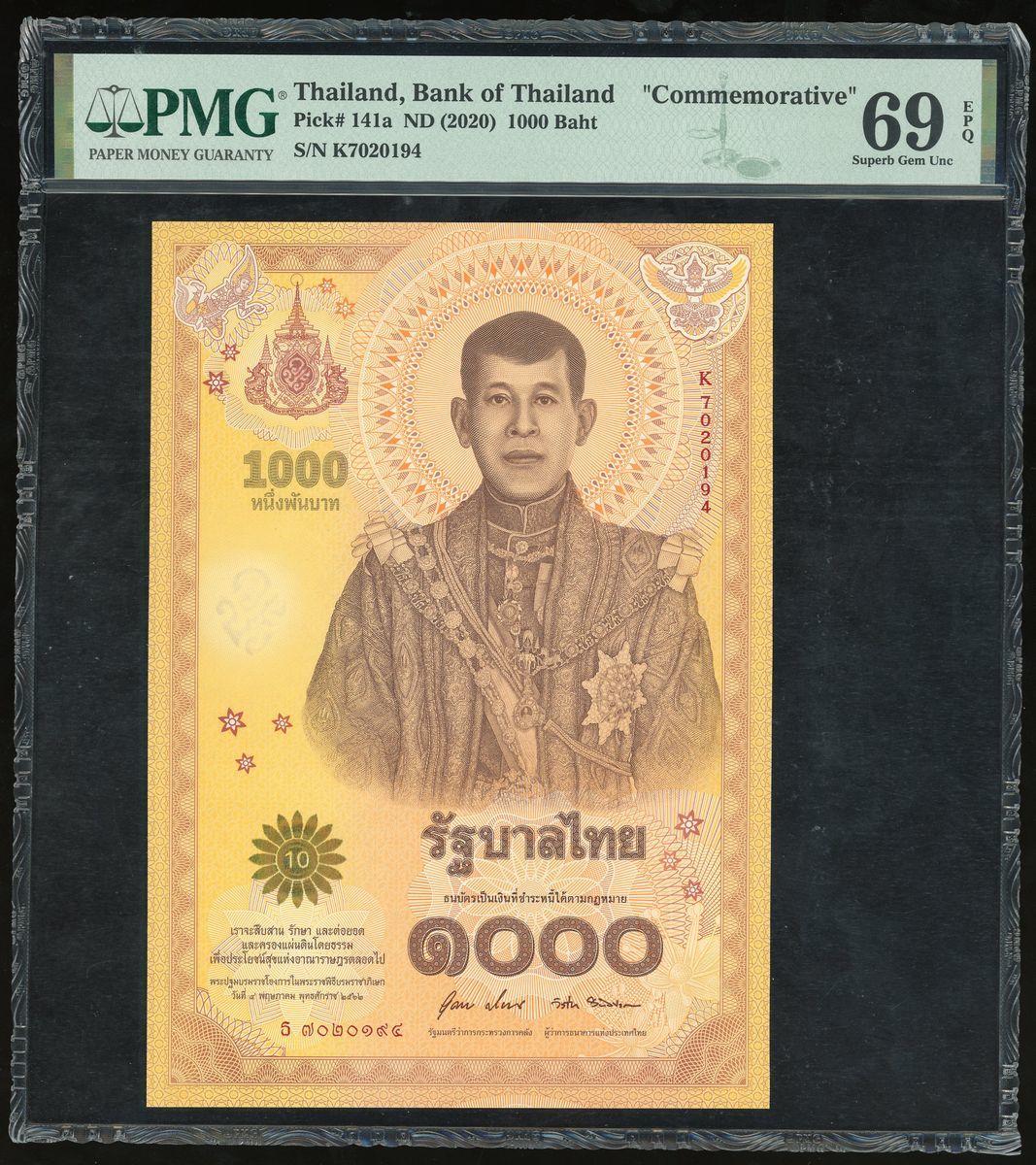 Bank of Thailand, commemorative 1000 baht, ND (2020), serial number K7020194, (Pick 141a), PMG 69EPQ. Only 5 better examples graded by PMG