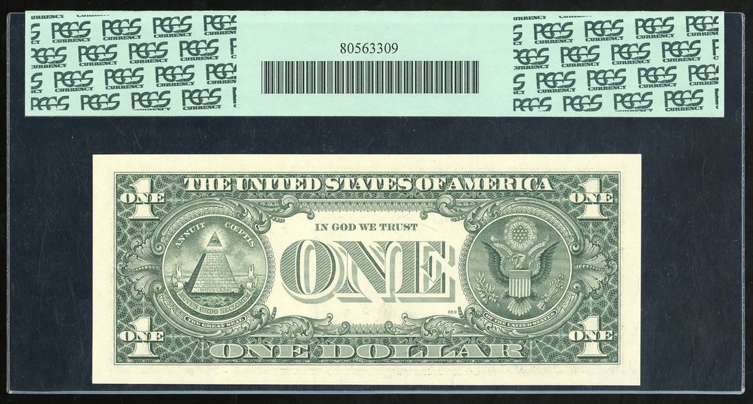 1995年美國1元錯體, 編號 F15074026V, 完全黑色背面, PCGS 66PPQ