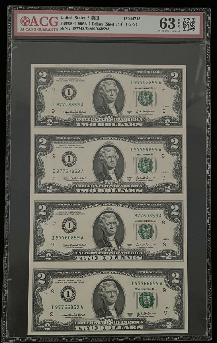 -uncut sheet of four $2, 2003, ACG 63EPQ,