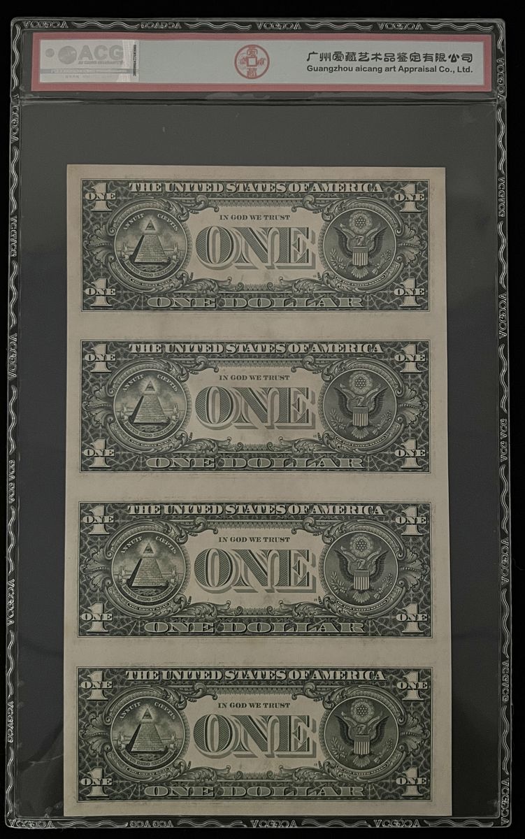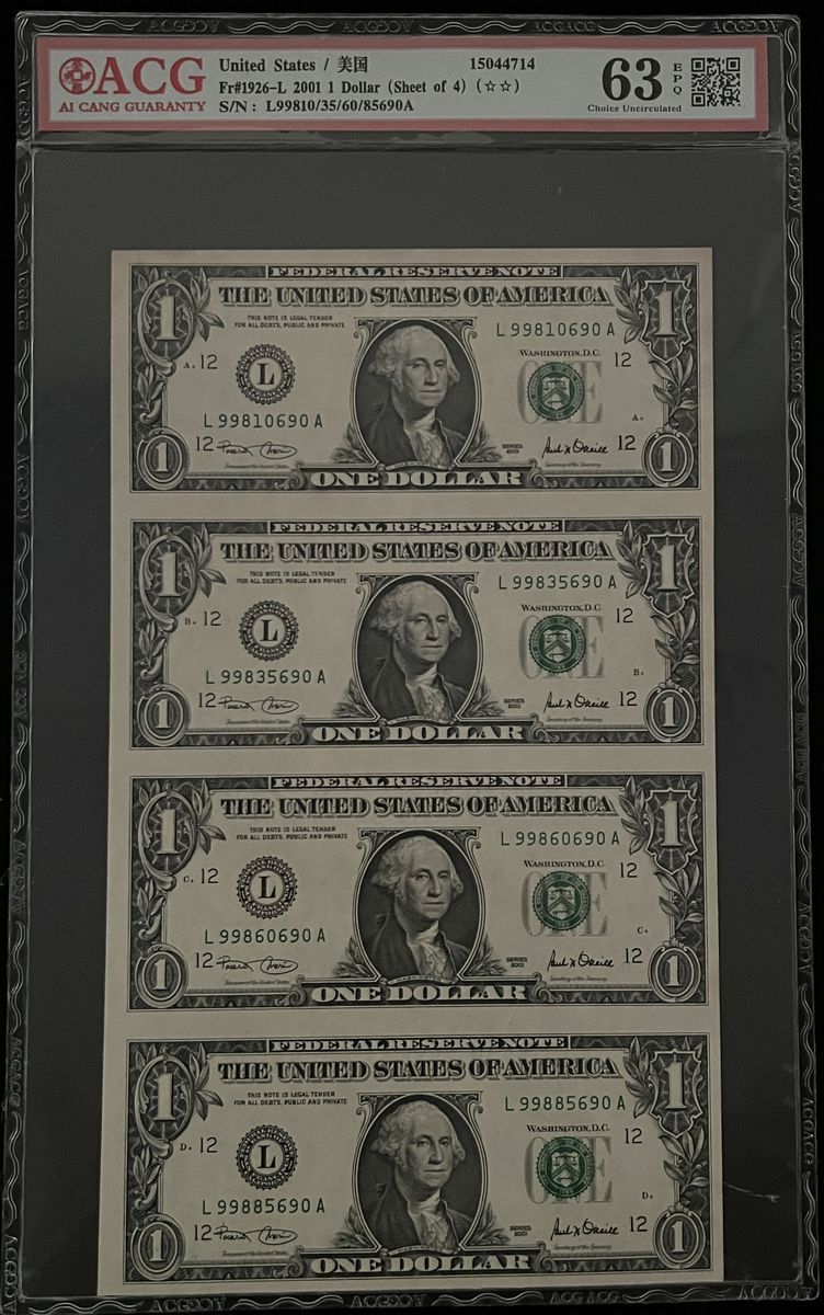 -uncut sheet of four $1, 2001, ACG 63EPQ,