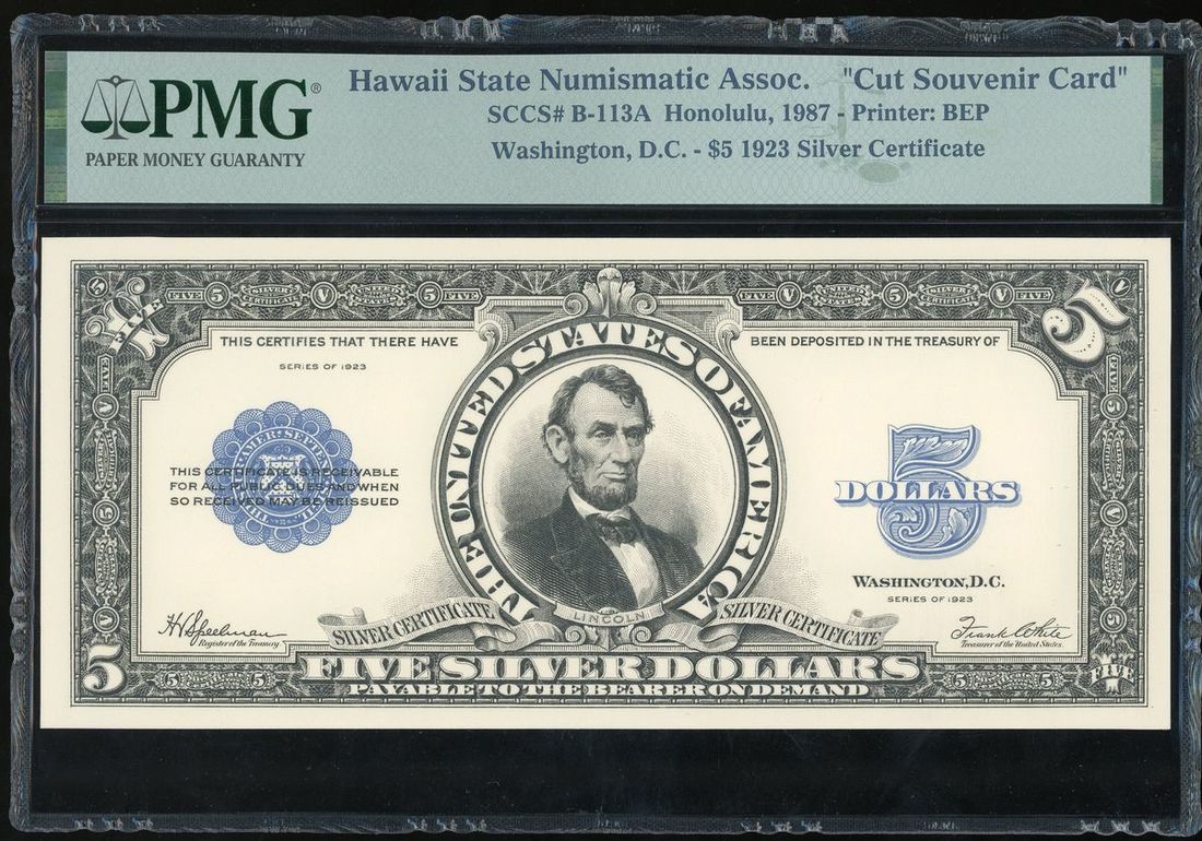 -silver certificate, $5 1923, for the Hawaii State Numismatics Association,