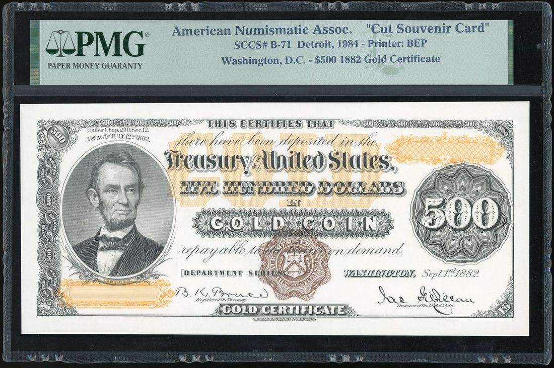-gold certificate, $500, 1882, for American Numismatics Association,
