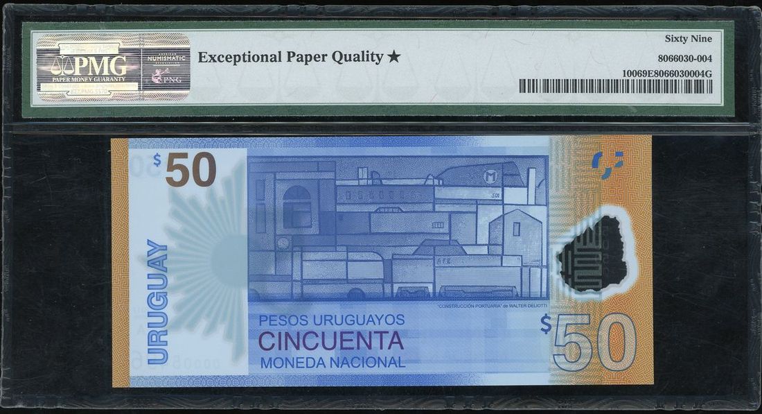Banco Central Del Uruguay, 50 pesos, 2017, serial number A00005496, polymer note,