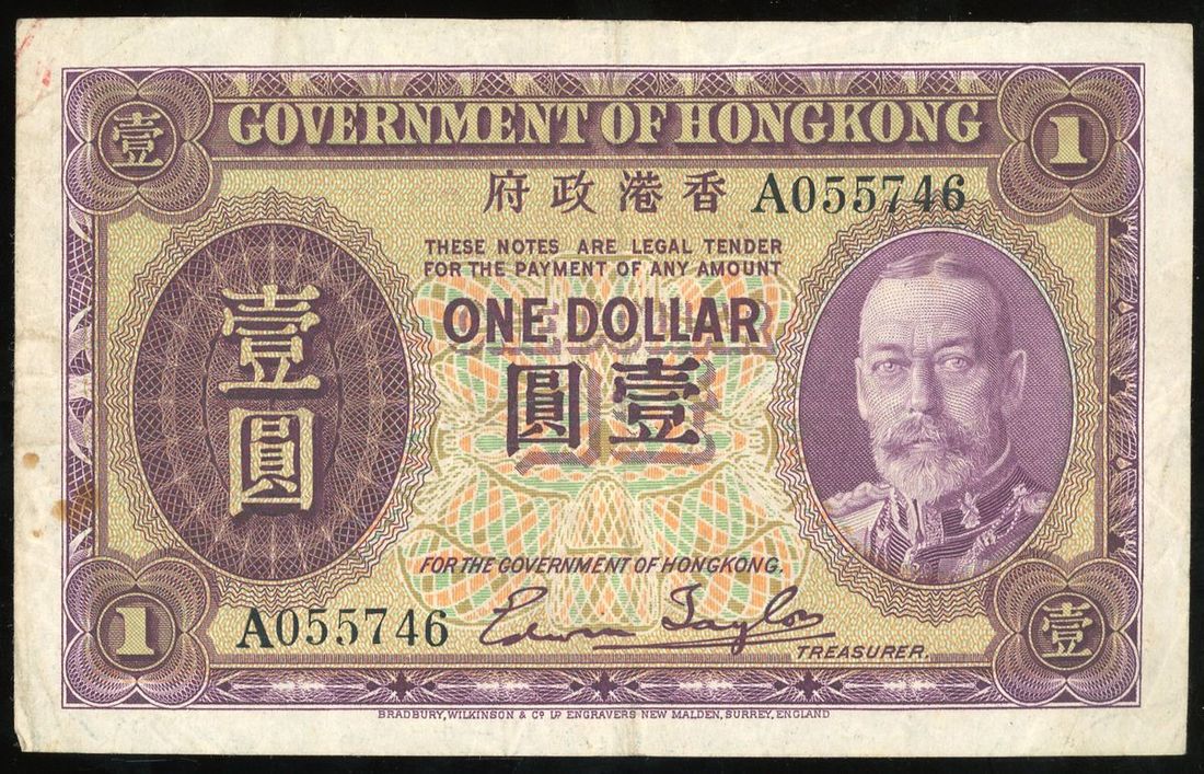 Government of HongKong, $1, ND (1935), serial number A055746, (Pick 311), first prefix, very fine