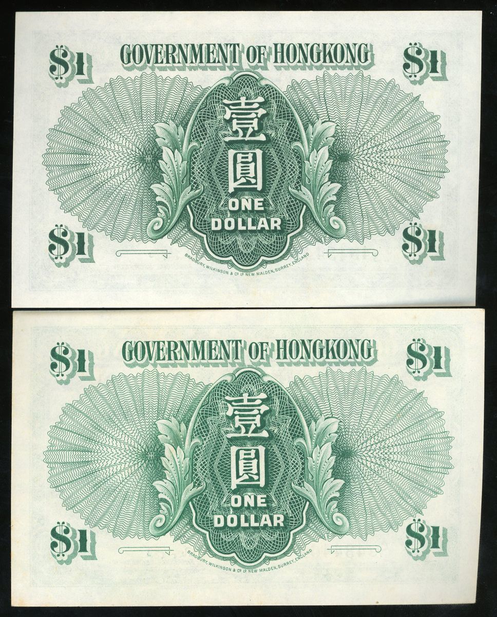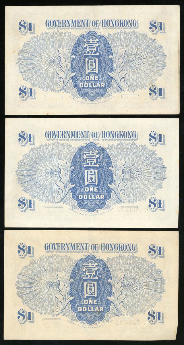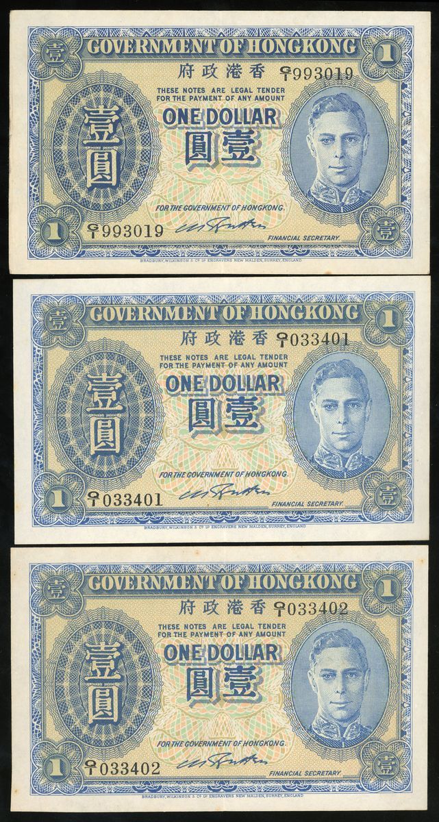 香港政府壹圓一組5枚,1940-1941年版3枚,GEF品相,中間有摺痕,1949年版2枚,UNC品相