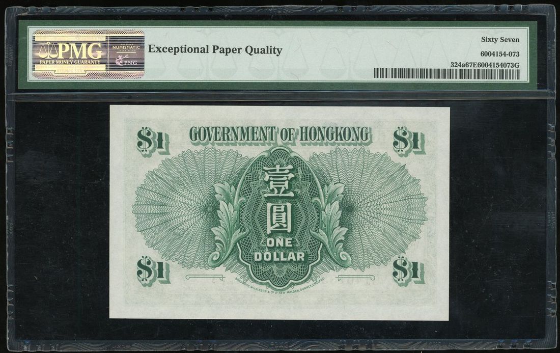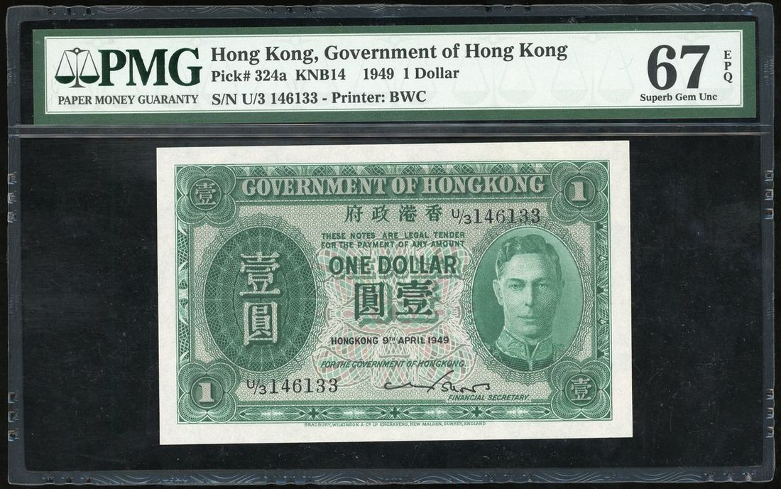 Government of Hongkong, $1, 9.4.1949, serial number U/3 146133, (Pick 324a), PMG 67EPQ Superb Gem Uncirculated