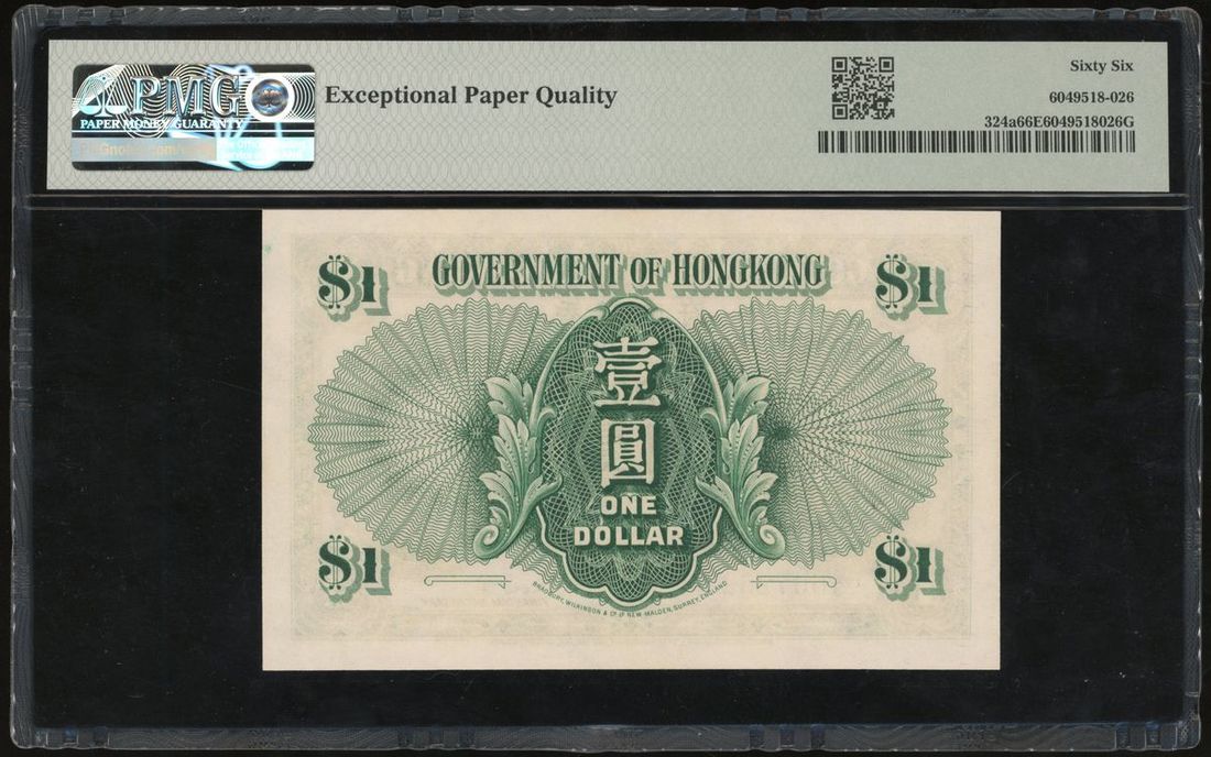 1949年香港政府壹圓,編號F/3 607252,PMG 66EPQ
