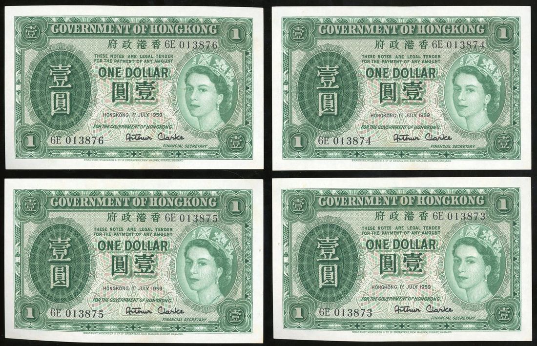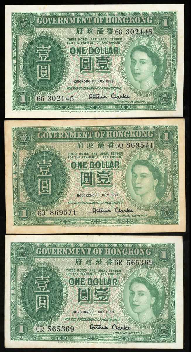 Government of HongKong, $1 (7), 1 July 1959, (Pick 324Ag), two VF with yellowing, others light centre fold, about uncirculated (7)