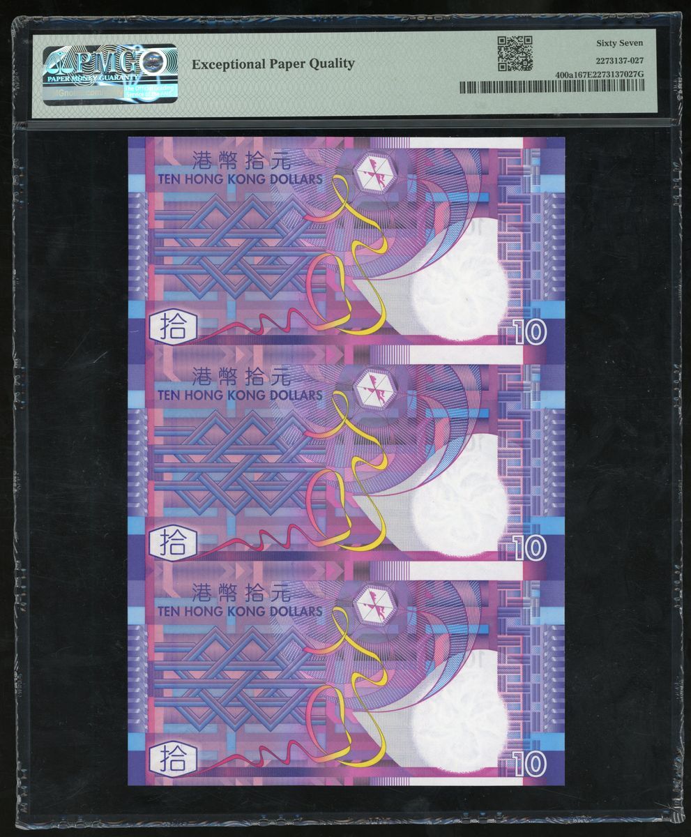 2002年香港新鈔票公益珍藏拾元三連體,編號876022/886022/896022,PMG 67EPQ,連原裝紙套