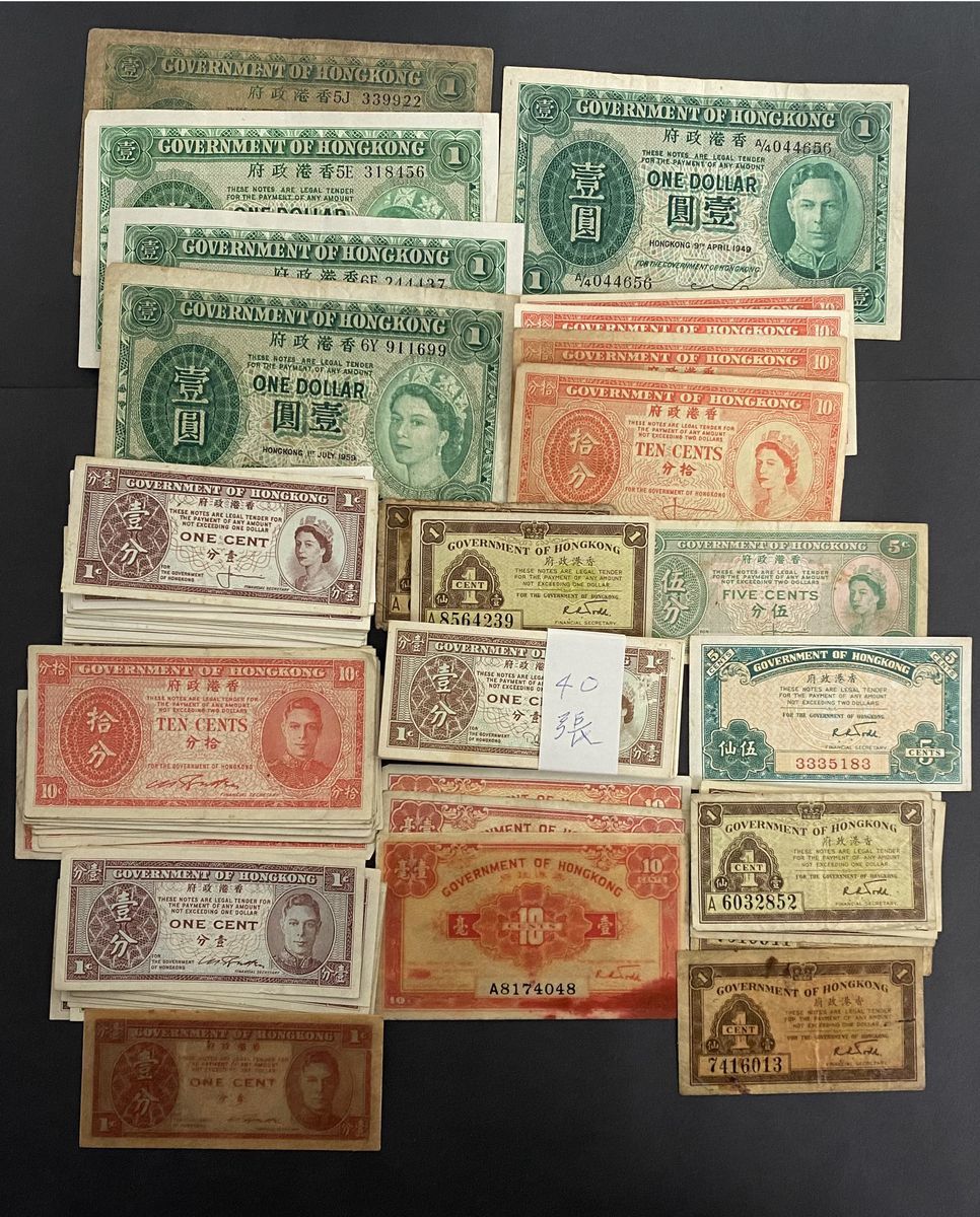 Government of HongKong, a group of 125x, including, 1940-41 issues, 1 cent (8), 5 cents (1), 10 cents (3), 1945-49 issues, 1 cent (12), 10 cents (18), 1952 issues, 1 cents (73), 5 cents (1), 10 cents (4), also $1 (5) 1949-1959,