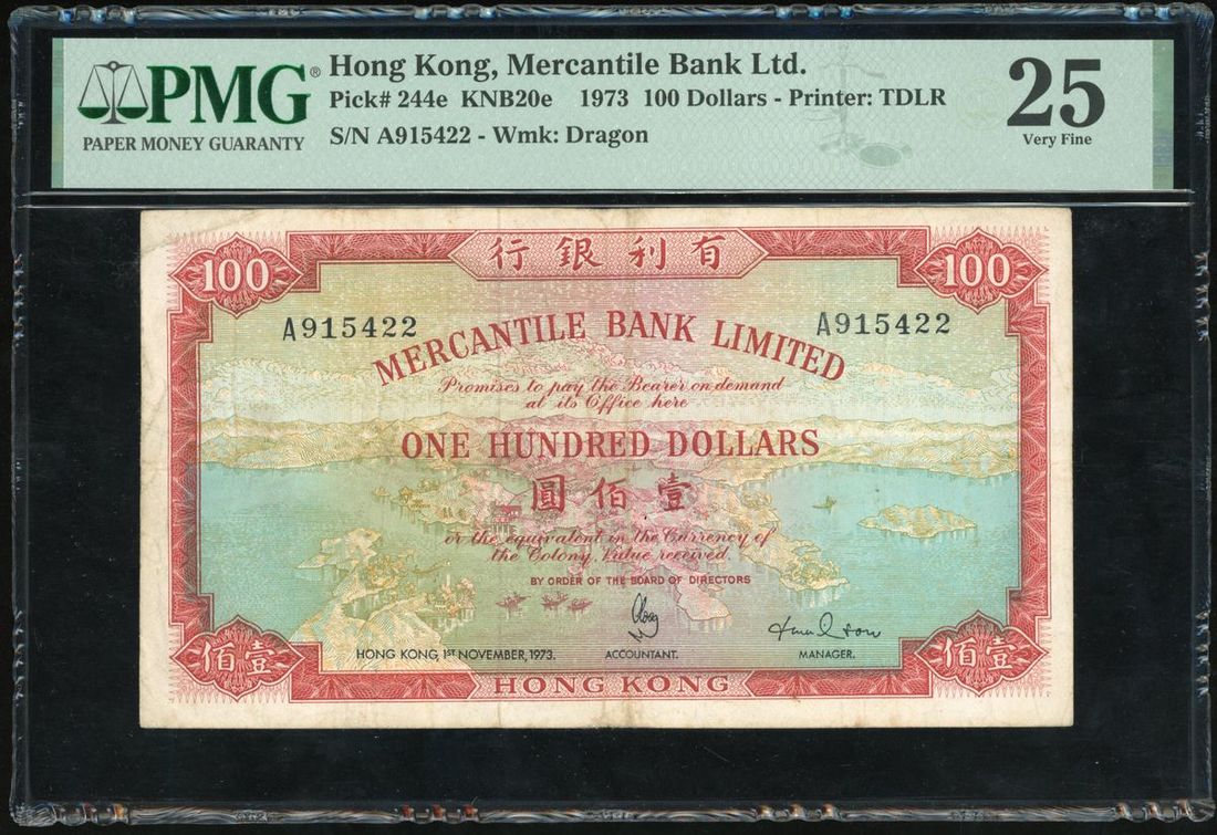 1973年有利銀行壹伯圓,編號A915422,PMG 25