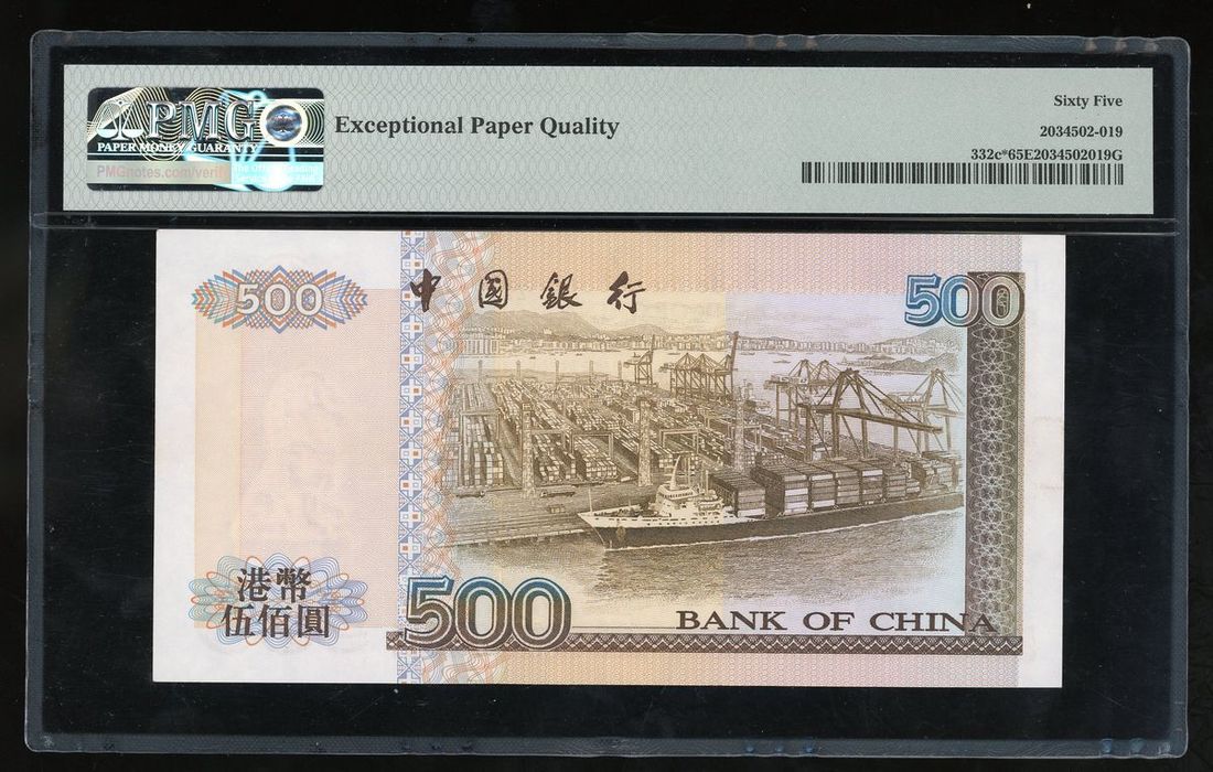 Bank of China, Hong Kong, $500, 1.1.1996, replacement serial number ZZ021833, (Pick 332c*), PMG 65EPQ Gem Uncirculated